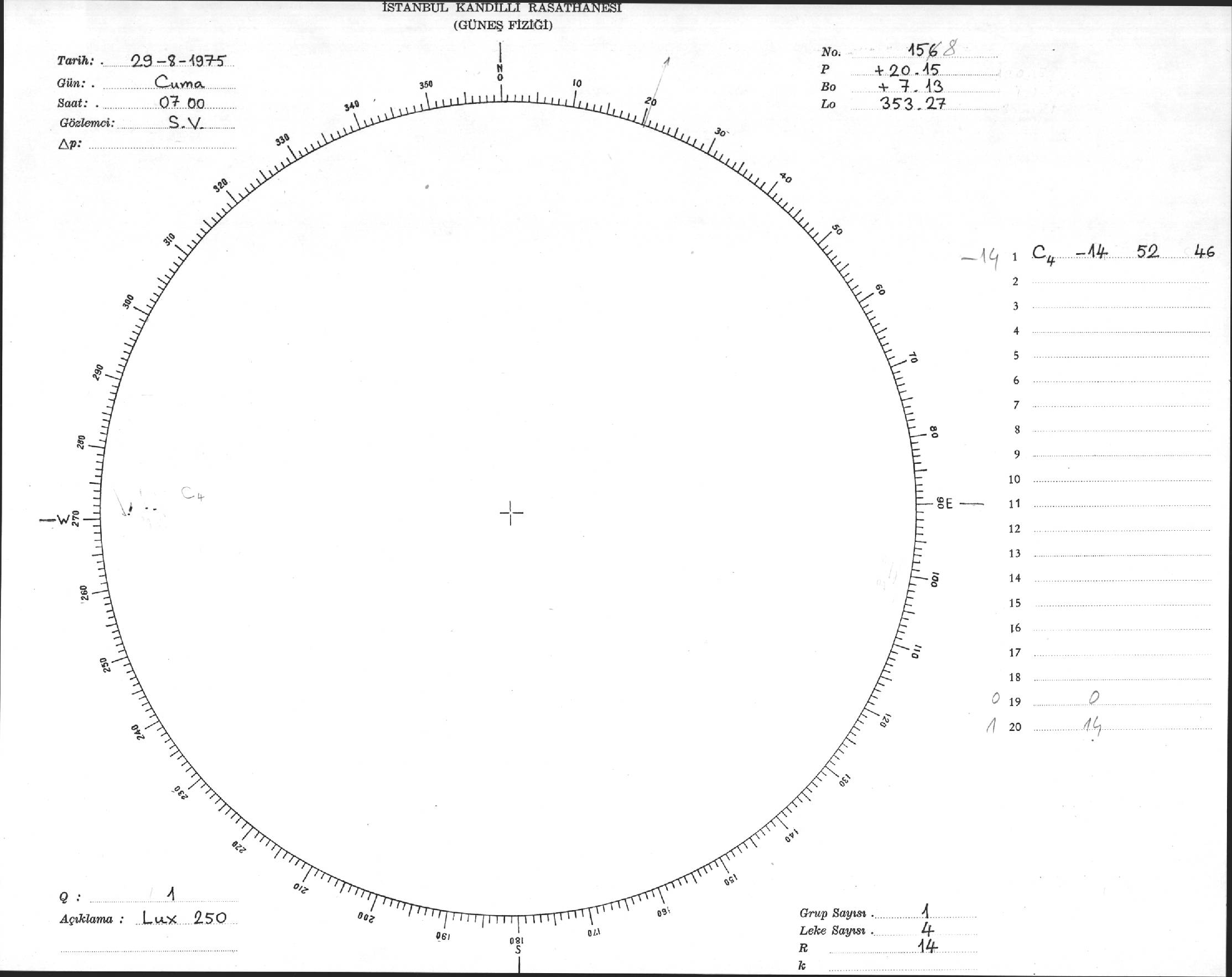 Güneş Lekesi Çizimi - 29.08.1975