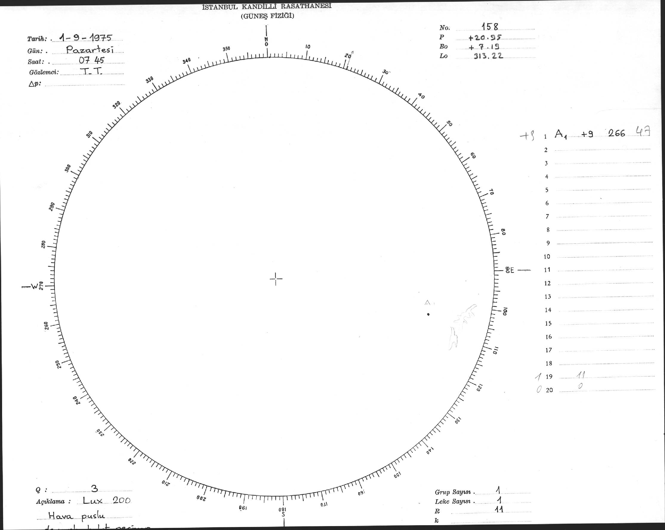 Güneş Lekesi Çizimi - 01.09.1975