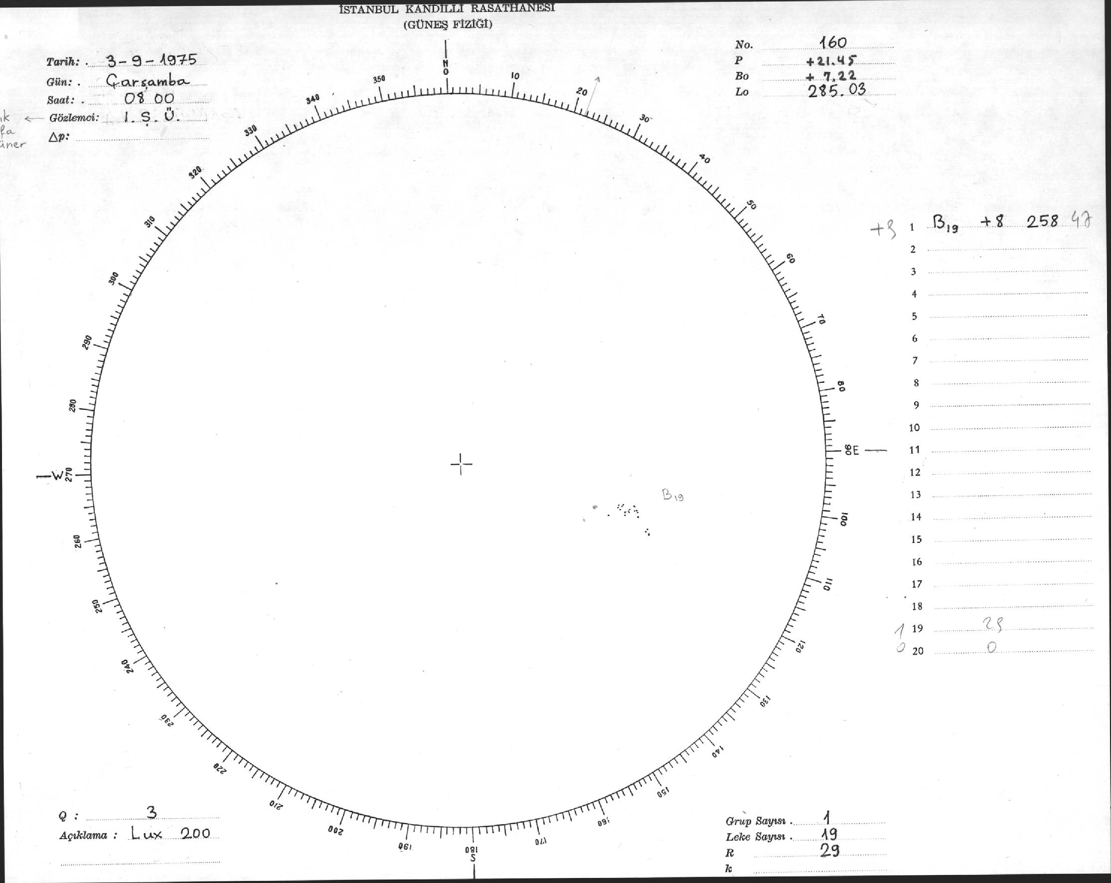 Güneş Lekesi Çizimi - 03.09.1975