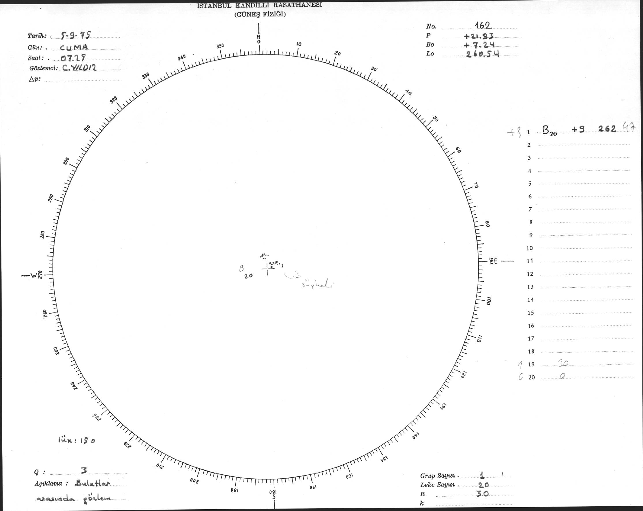 Güneş Lekesi Çizimi - 05.09.1975