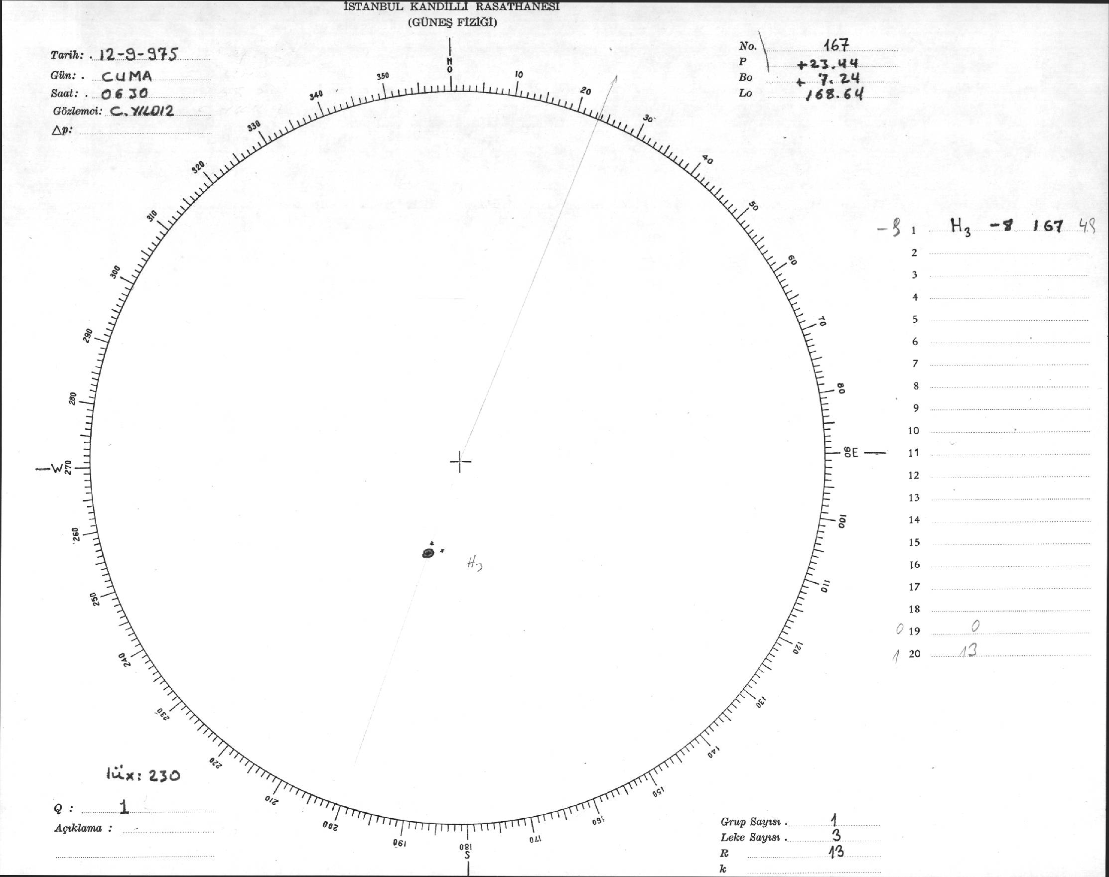 Güneş Lekesi Çizimi - 12.09.1975