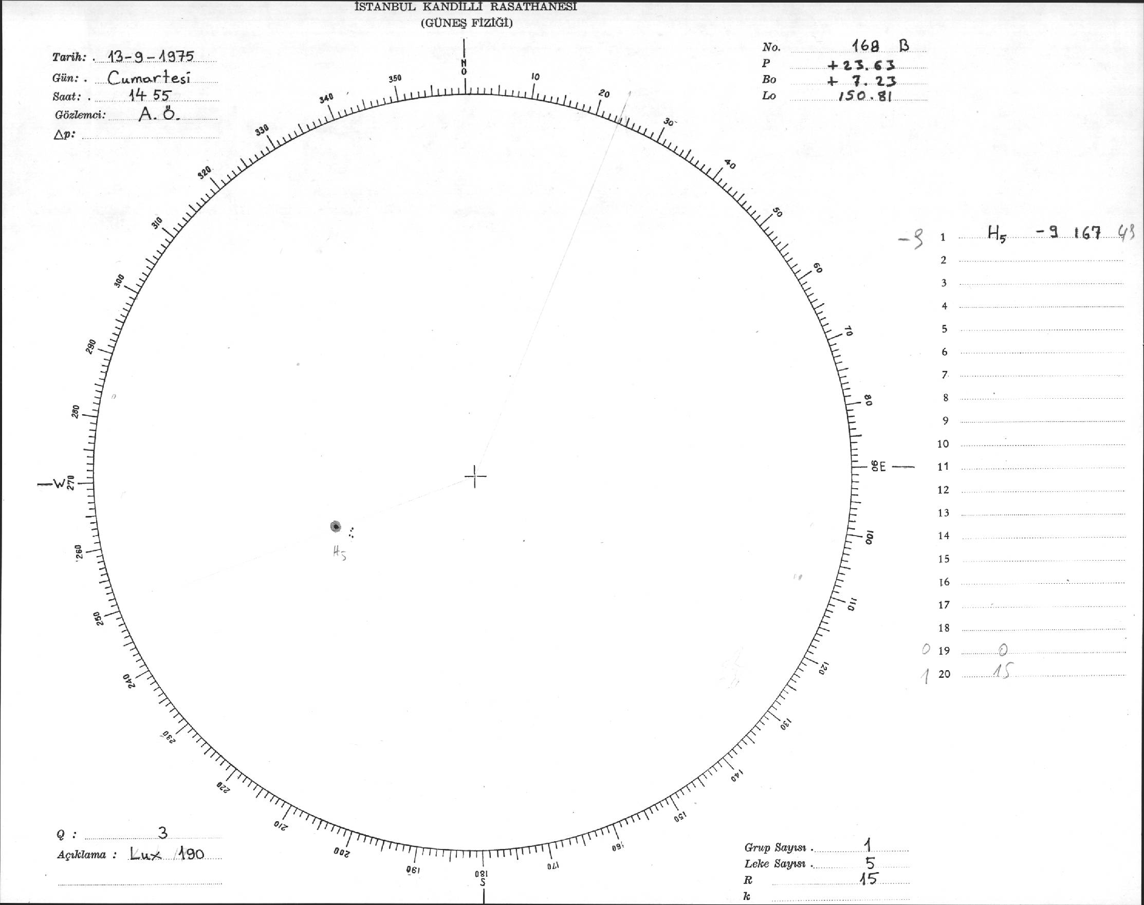 Güneş Lekesi Çizimi - 13.09.1975