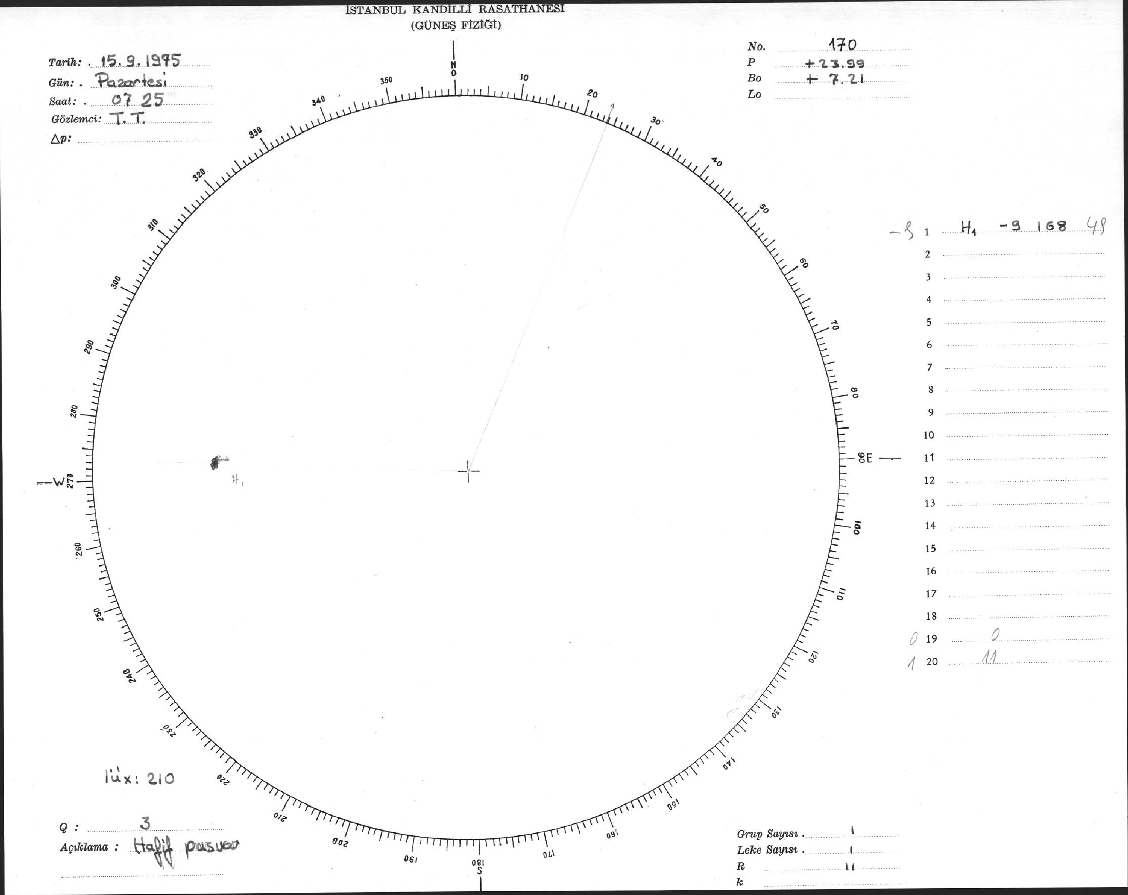 Güneş Lekesi Çizimi - 15.09.1975