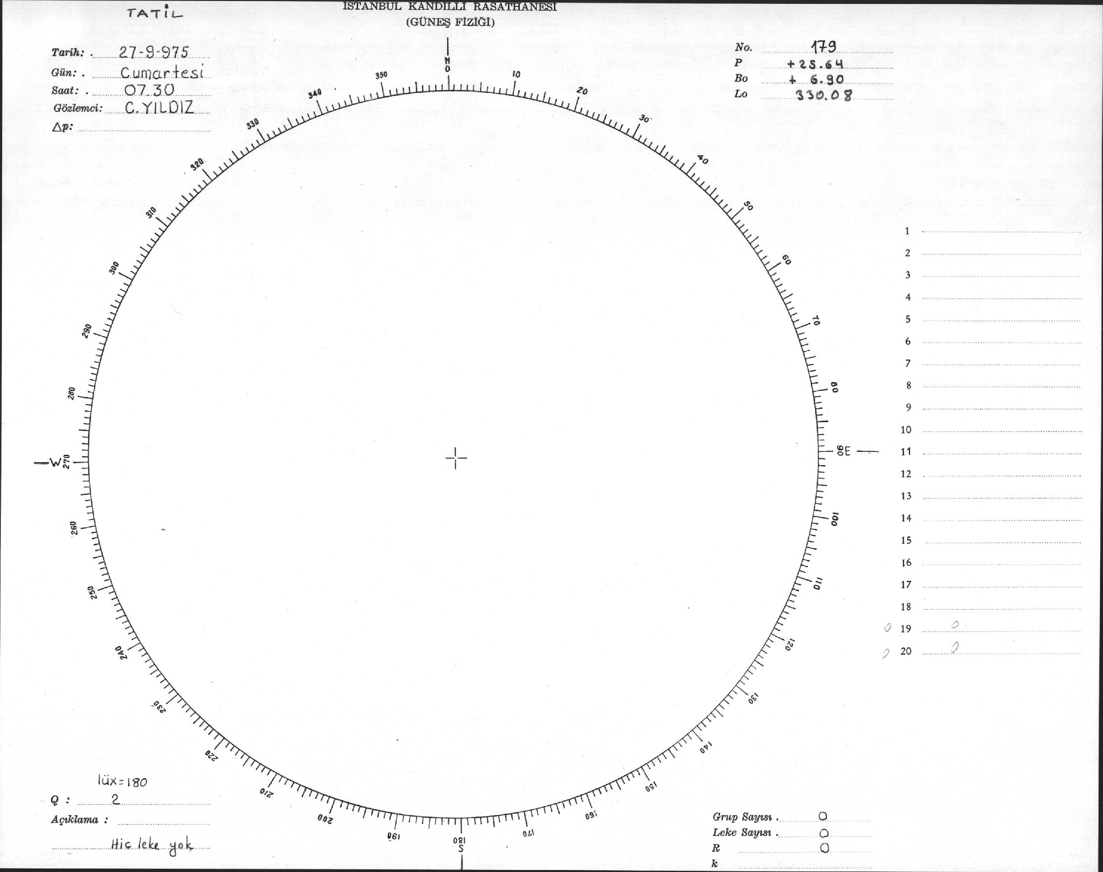 Güneş Lekesi Çizimi - 27.09.1975