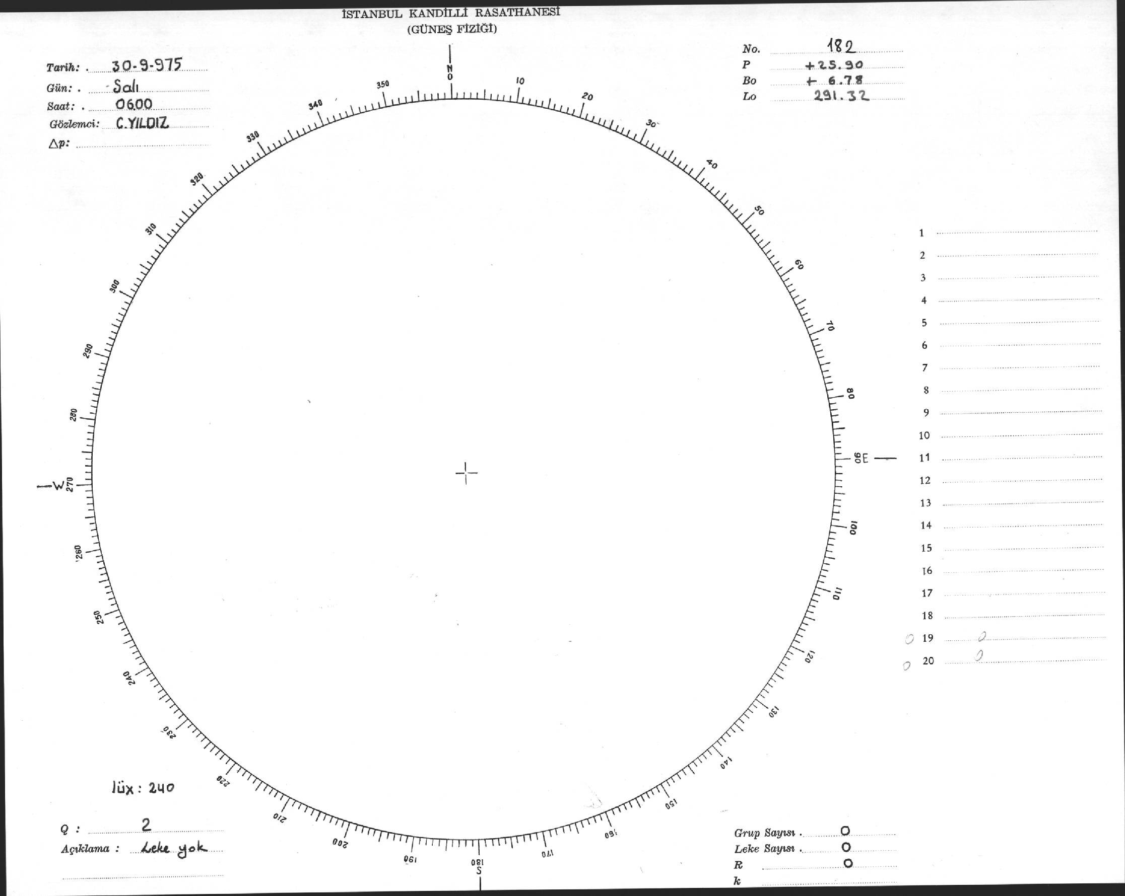 Güneş Lekesi Çizimi - 30.09.1975