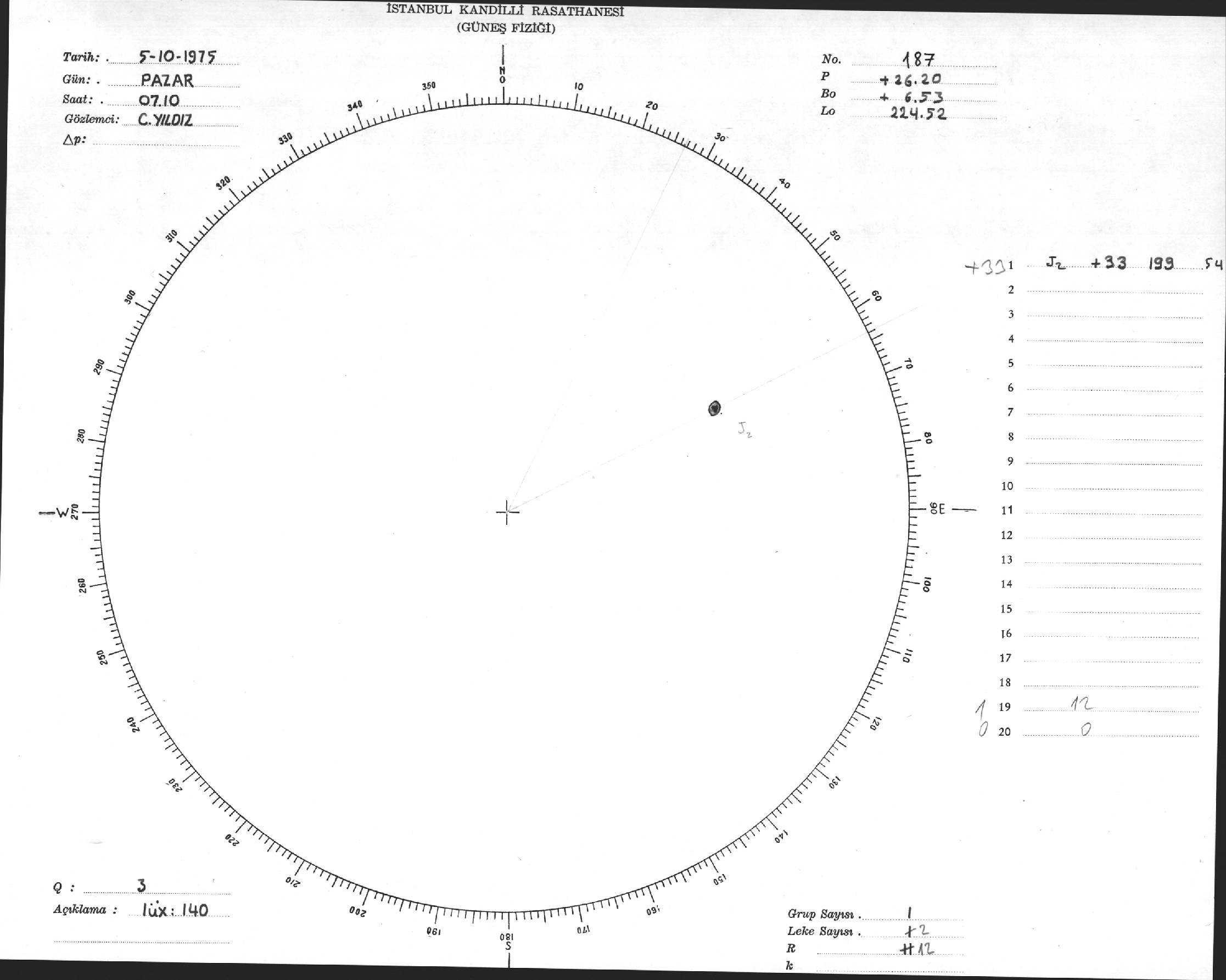 Güneş Lekesi Çizimi - 05.10.1975