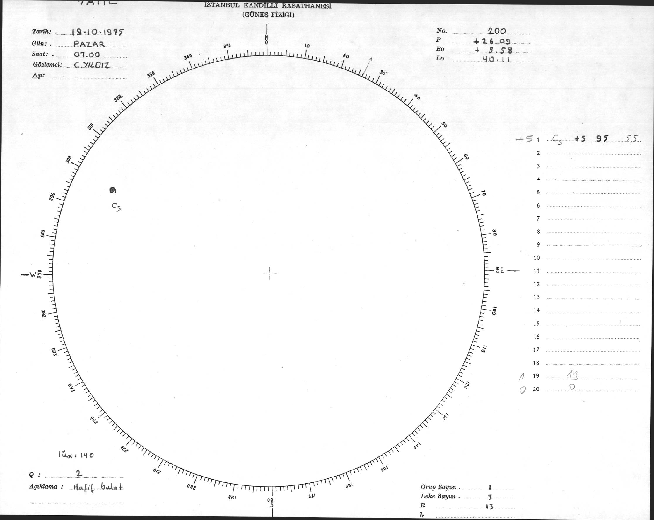 Güneş Lekesi Çizimi - 19.10.1975