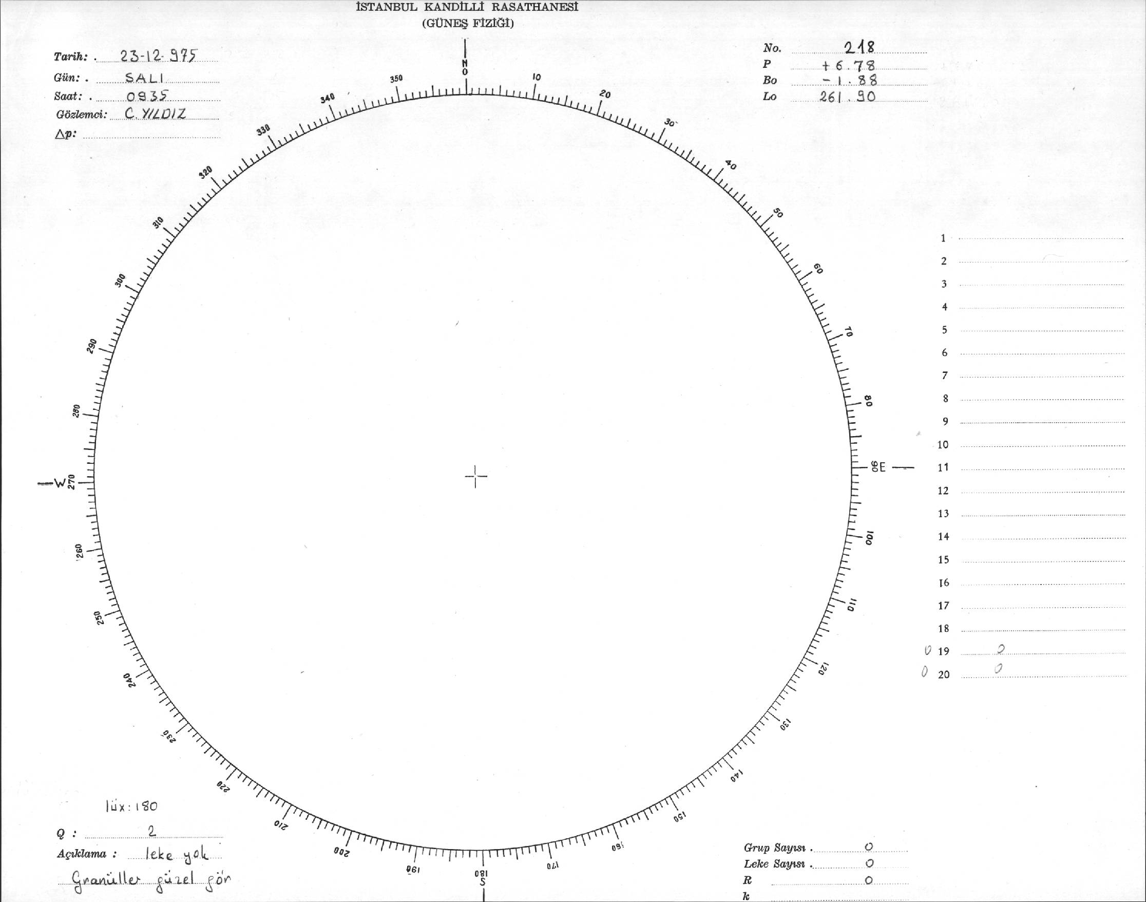 Güneş Lekesi Çizimi - 23.12.1975