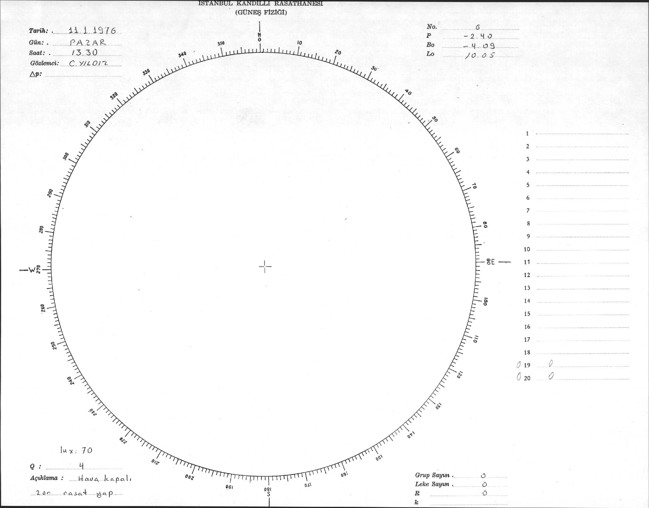 Güneş Lekesi Çizimi - 11.01.1976