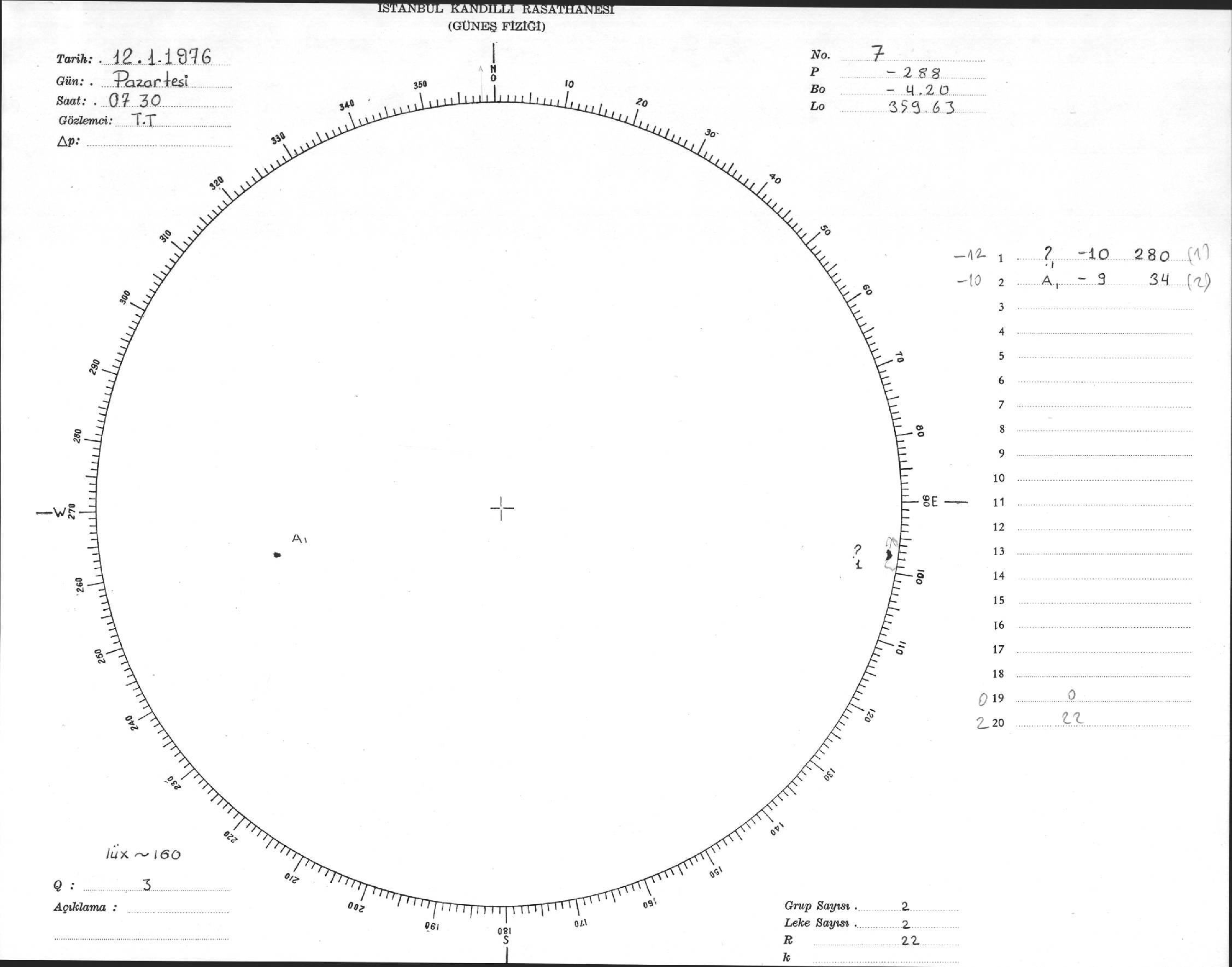 Güneş Lekesi Çizimi - 12.01.1976