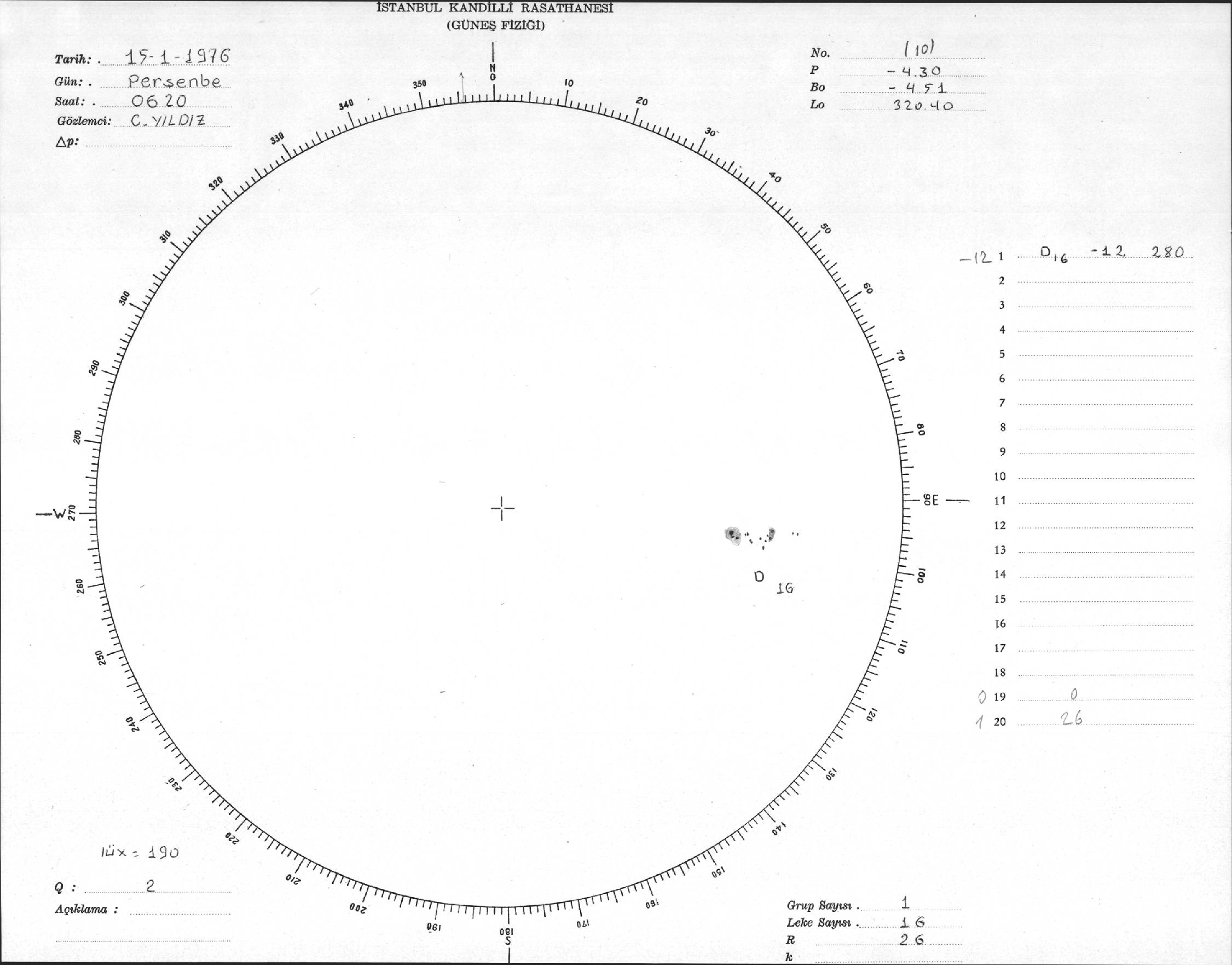 Güneş Lekesi Çizimi - 15.01.1976