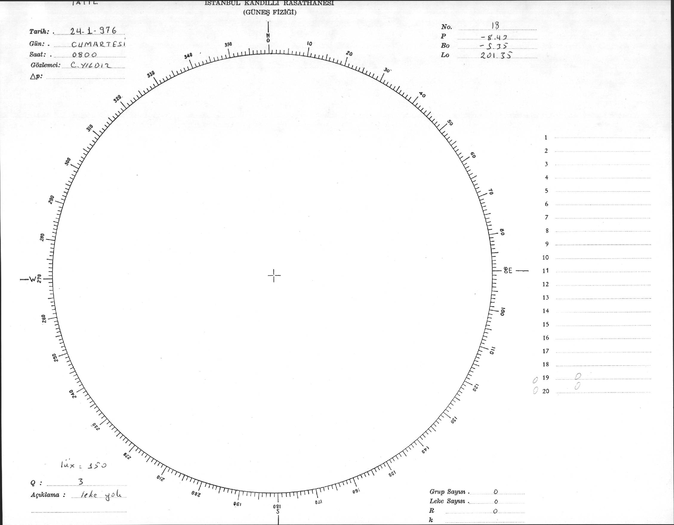 Güneş Lekesi Çizimi - 24.01.1976