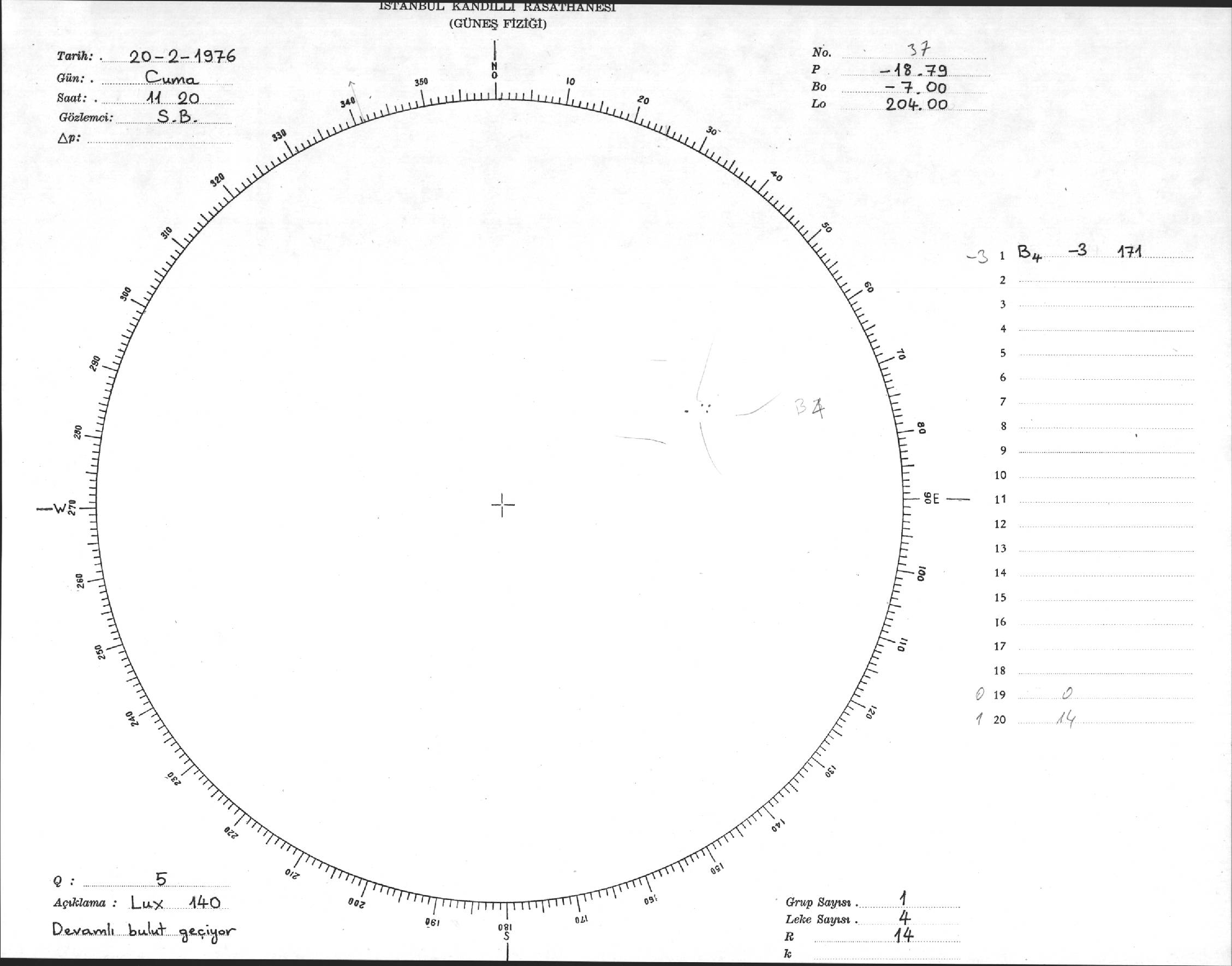 Güneş Lekesi Çizimi - 20.02.1976