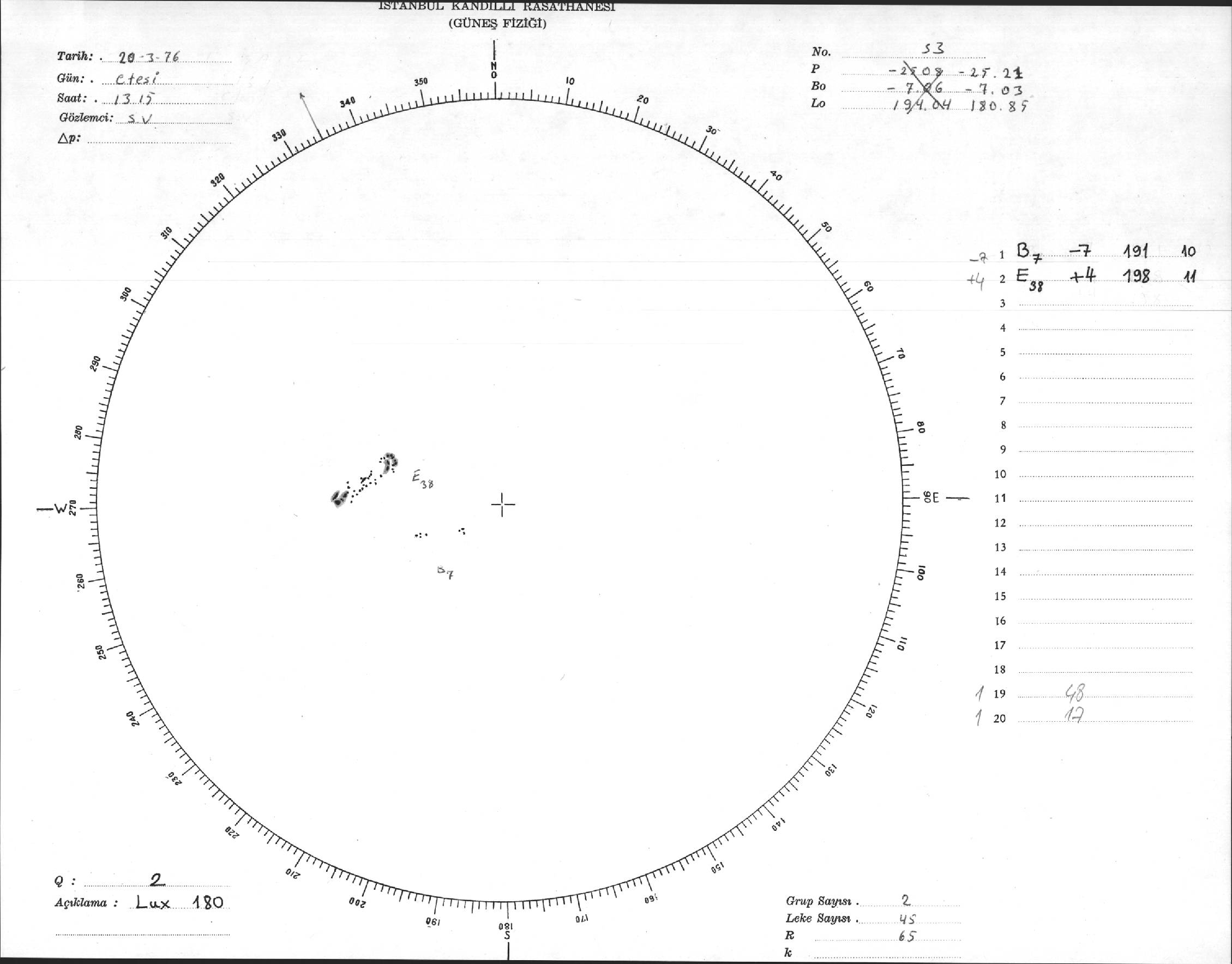 Güneş Lekesi Çizimi - 20.03.1976
