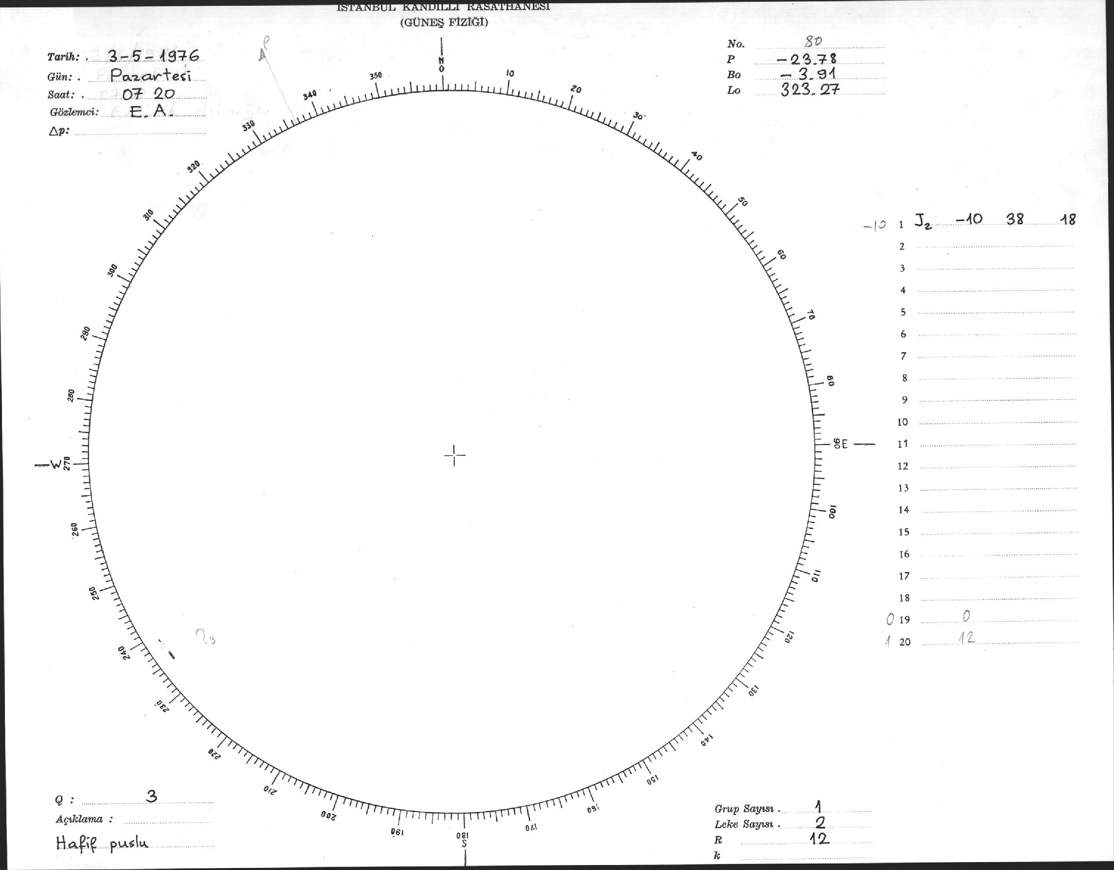 Güneş Lekesi Çizimi - 03.05.1976