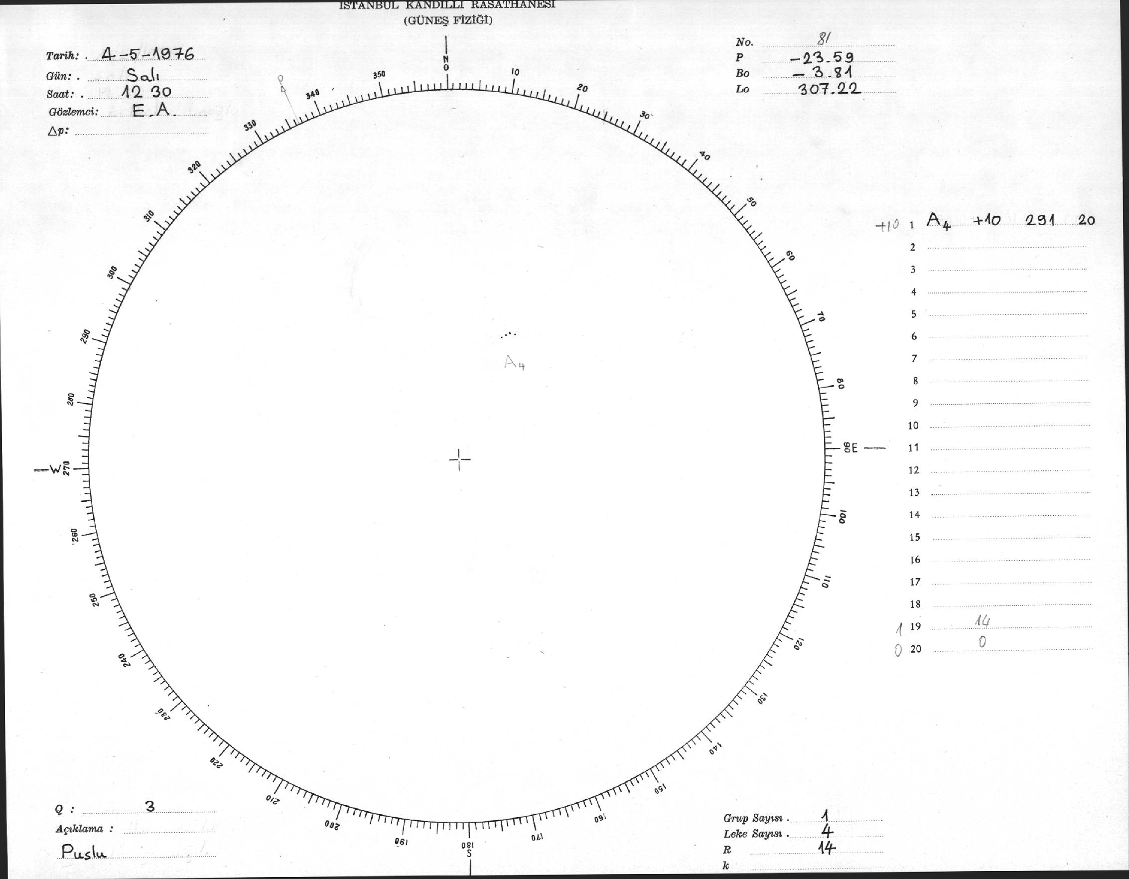Güneş Lekesi Çizimi - 04.05.1976