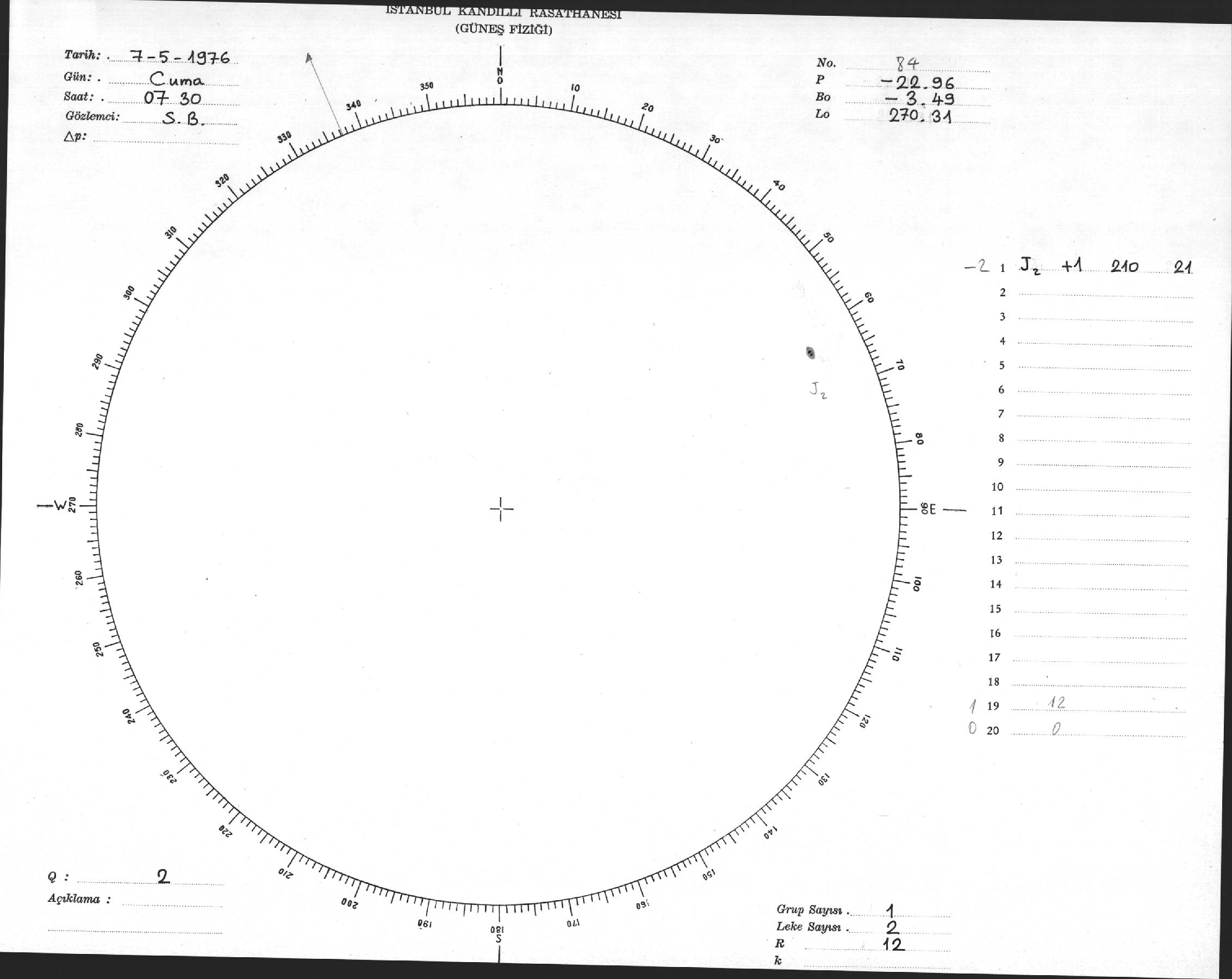Güneş Lekesi Çizimi - 07.05.1976