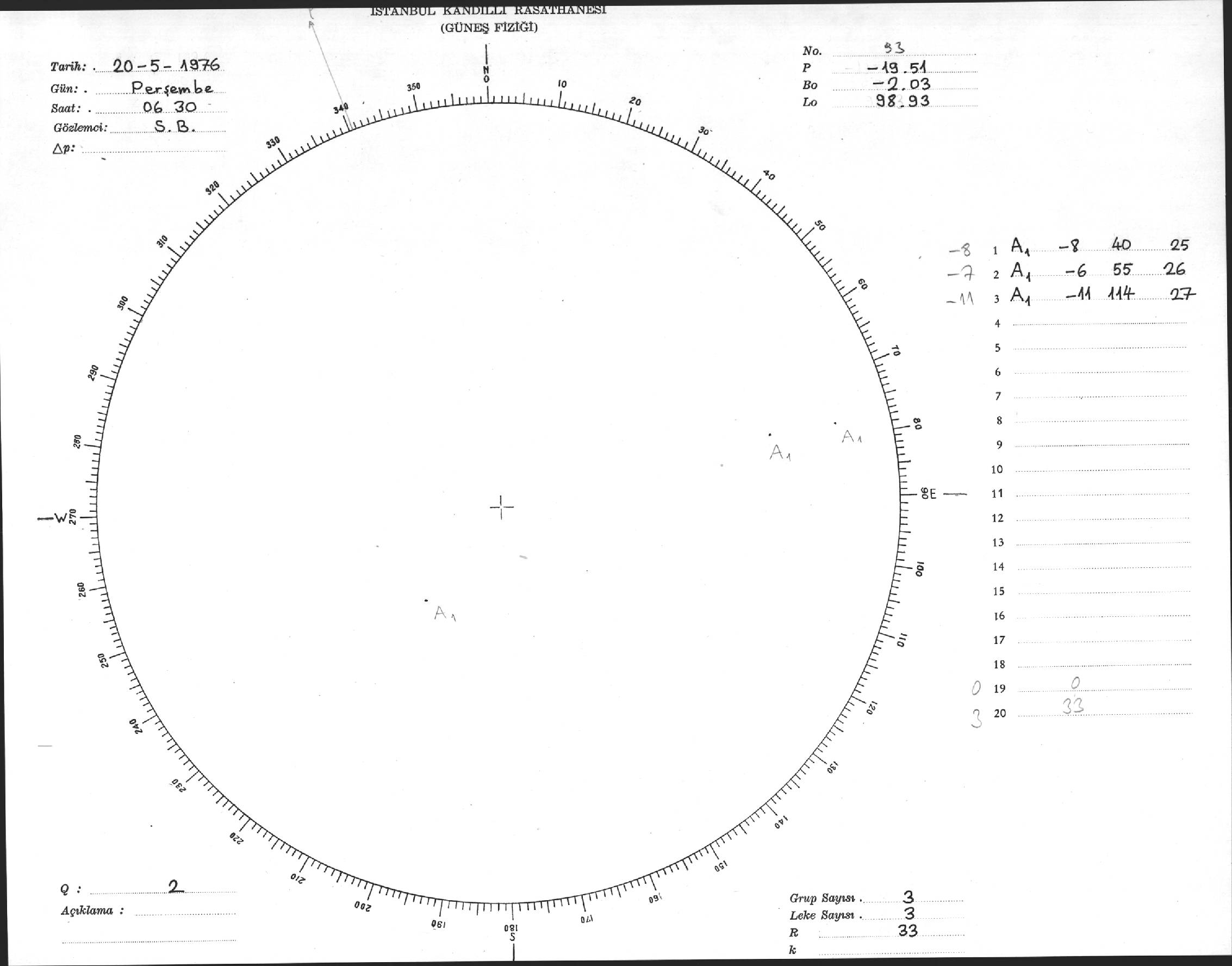 Güneş Lekesi Çizimi - 20.05.1976