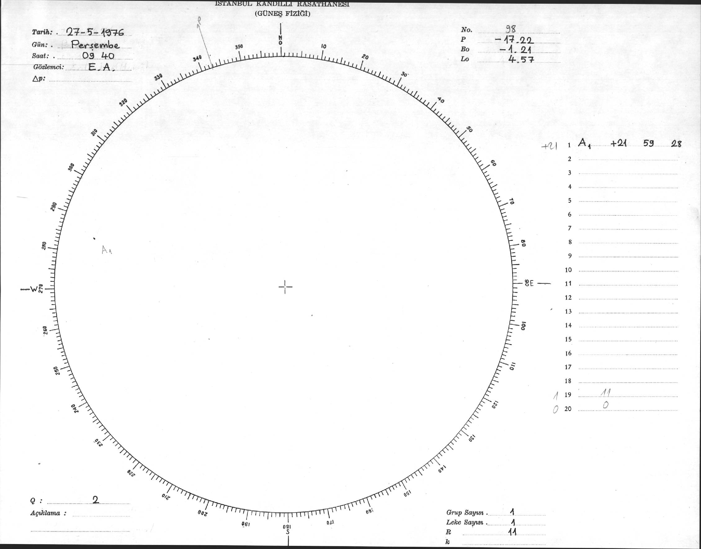 Güneş Lekesi Çizimi - 27.05.1976