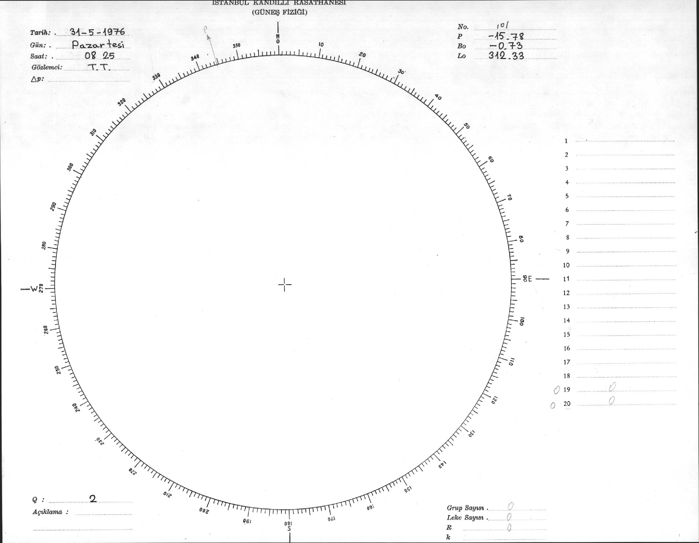 Güneş Lekesi Çizimi - 31.05.1976