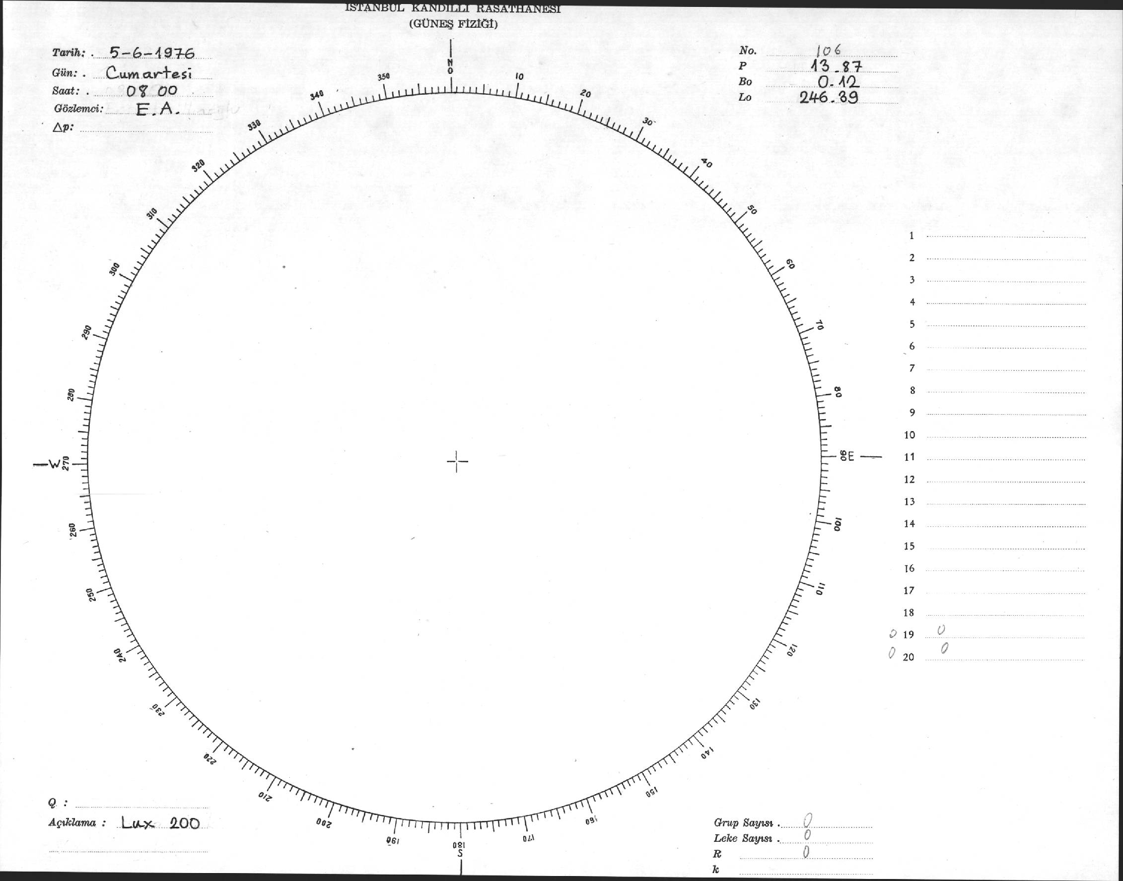 Güneş Lekesi Çizimi - 05.06.1976