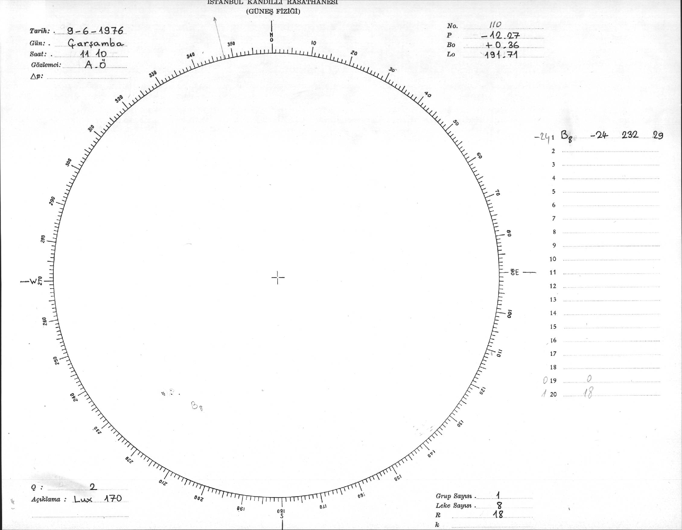 Güneş Lekesi Çizimi - 09.06.1976