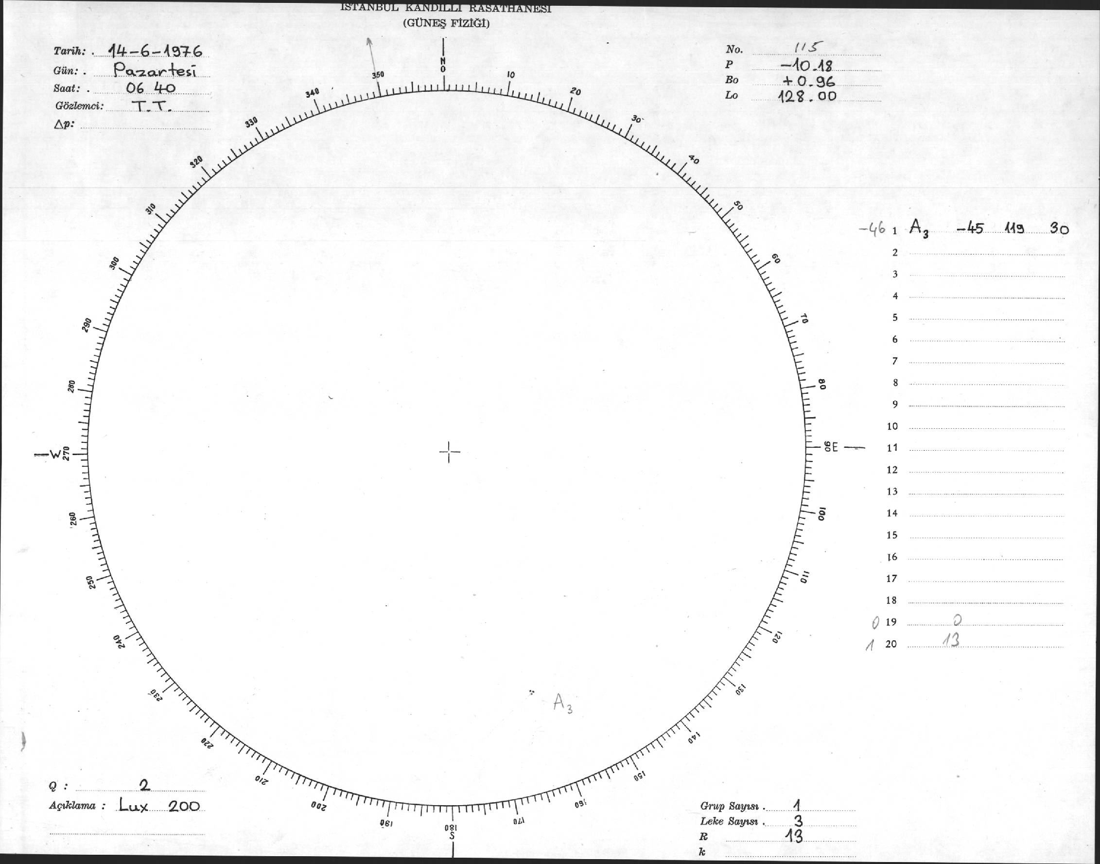 Güneş Lekesi Çizimi - 14.06.1976
