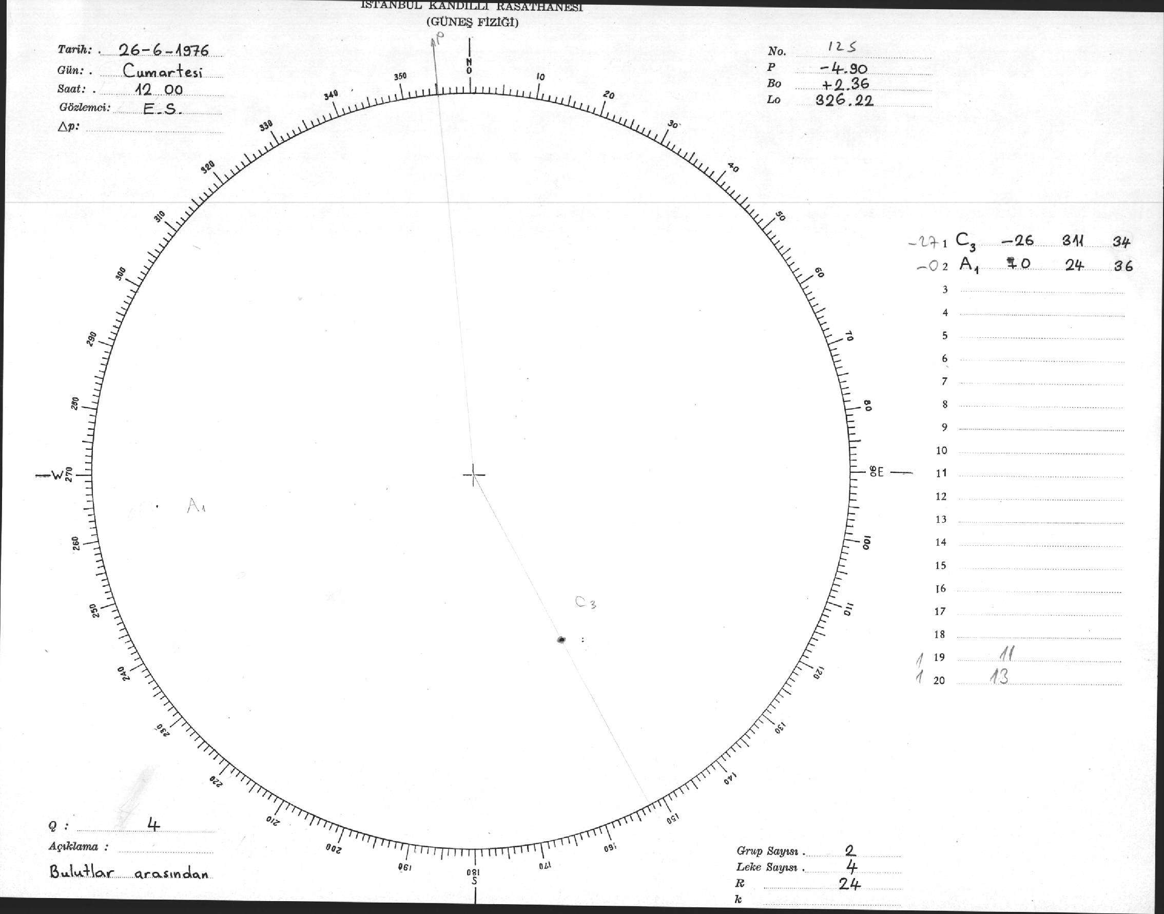 Güneş Lekesi Çizimi - 26.06.1976
