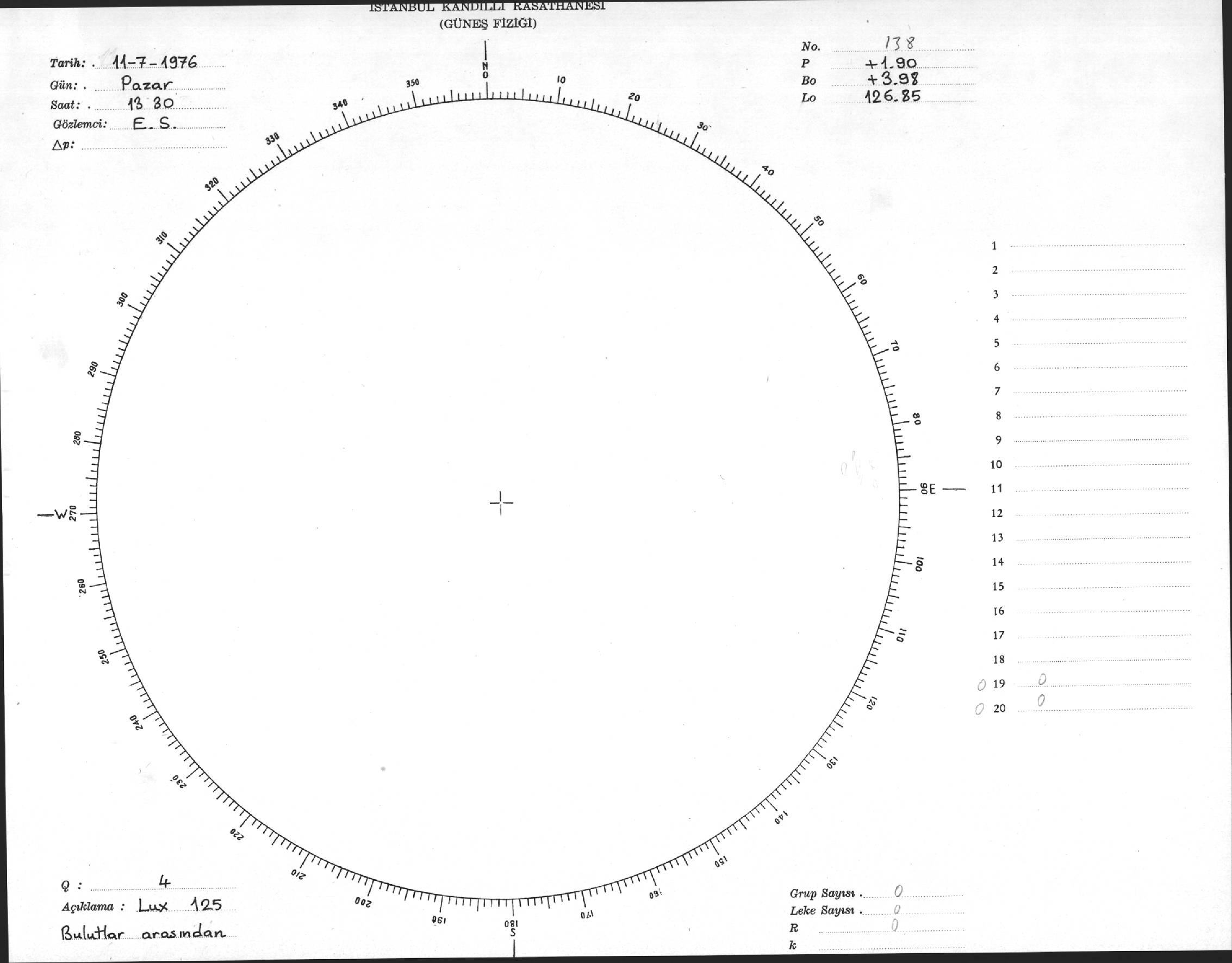 Güneş Lekesi Çizimi - 11.07.1976