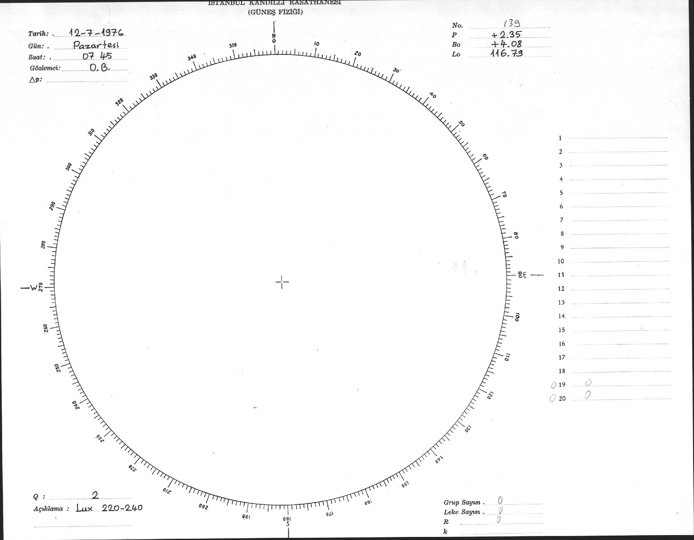 Güneş Lekesi Çizimi - 12.07.1976