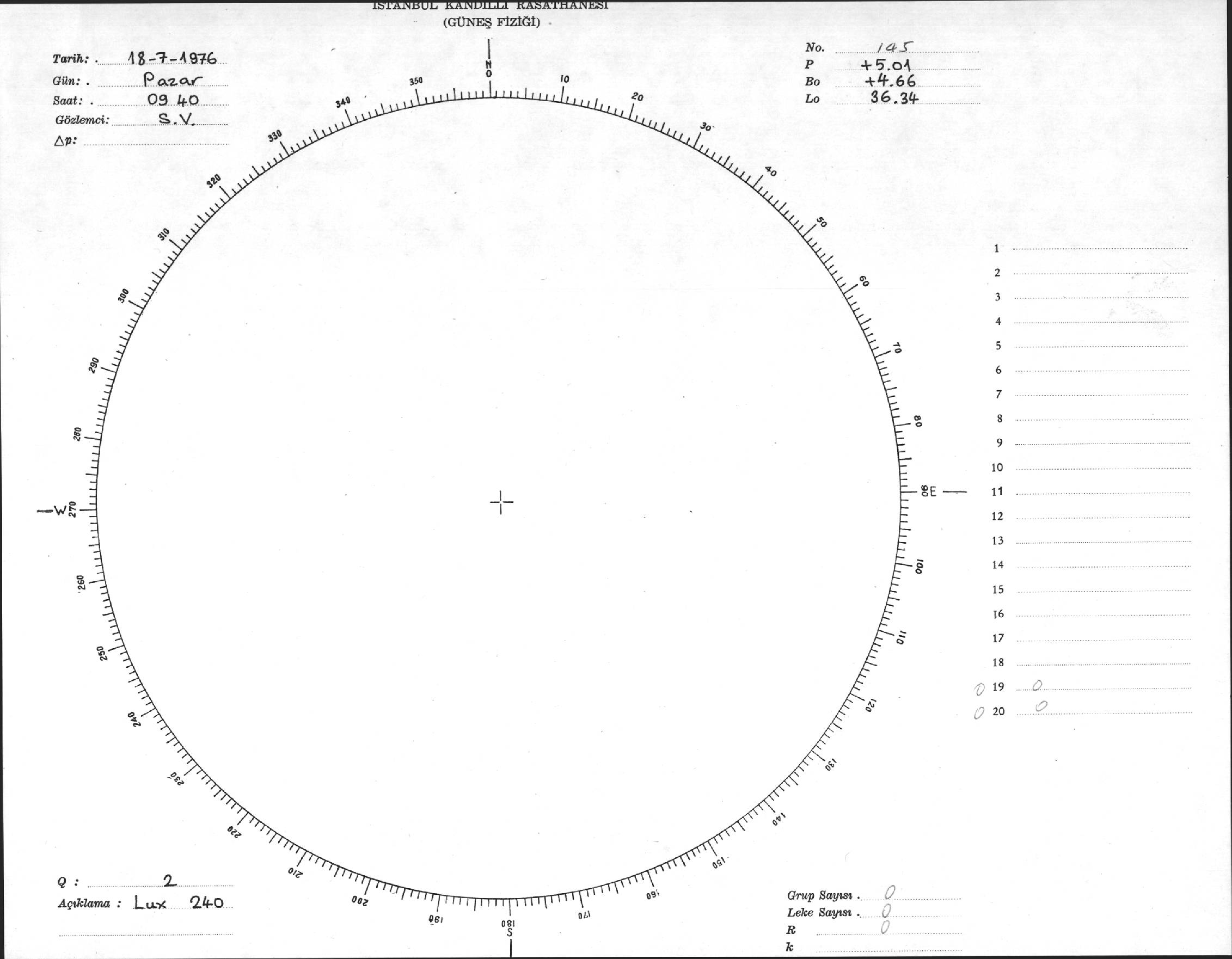 Güneş Lekesi Çizimi - 18.07.1976