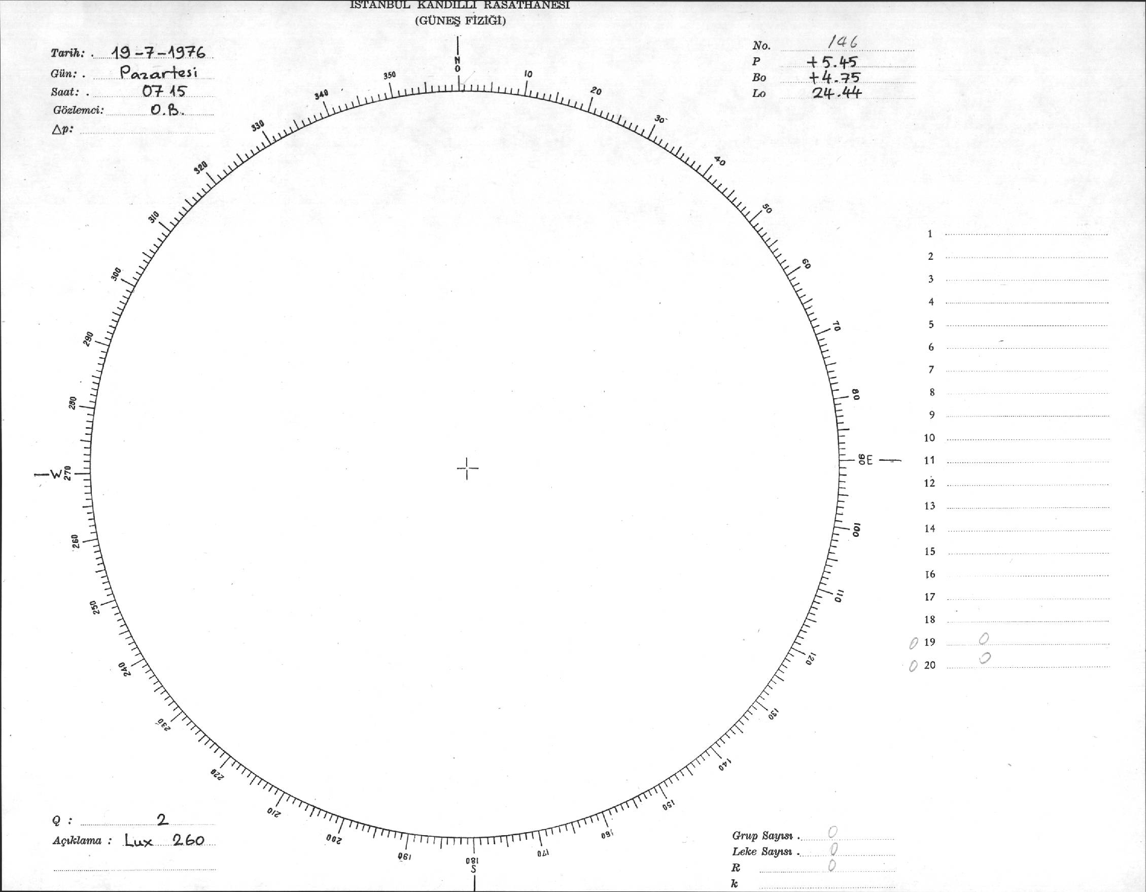 Güneş Lekesi Çizimi - 19.07.1976