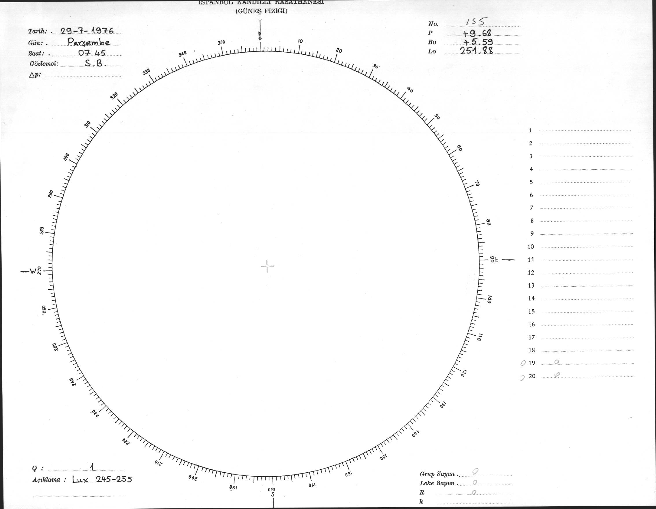 Güneş Lekesi Çizimi - 29.07.1976