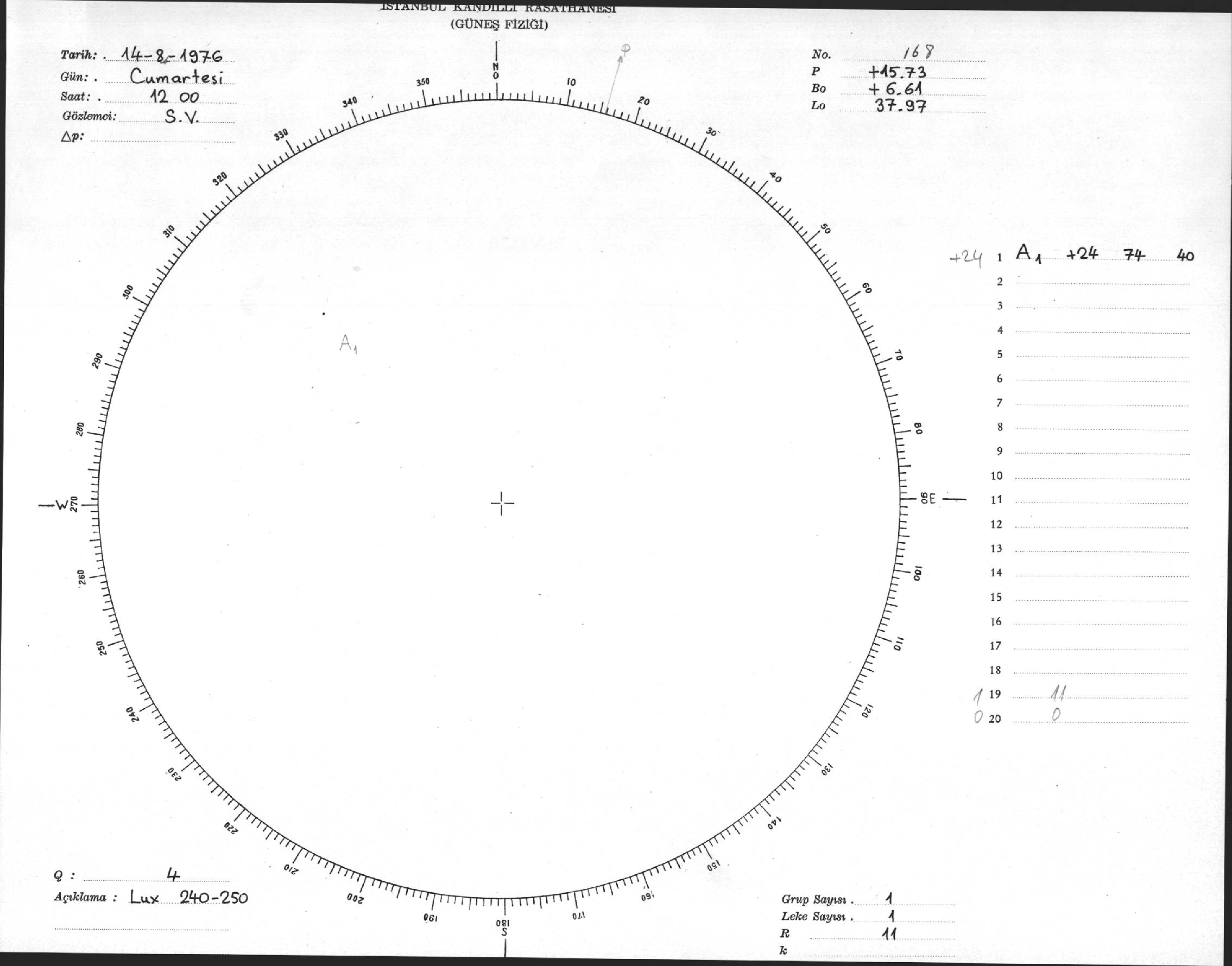 Güneş Lekesi Çizimi - 14.08.1976