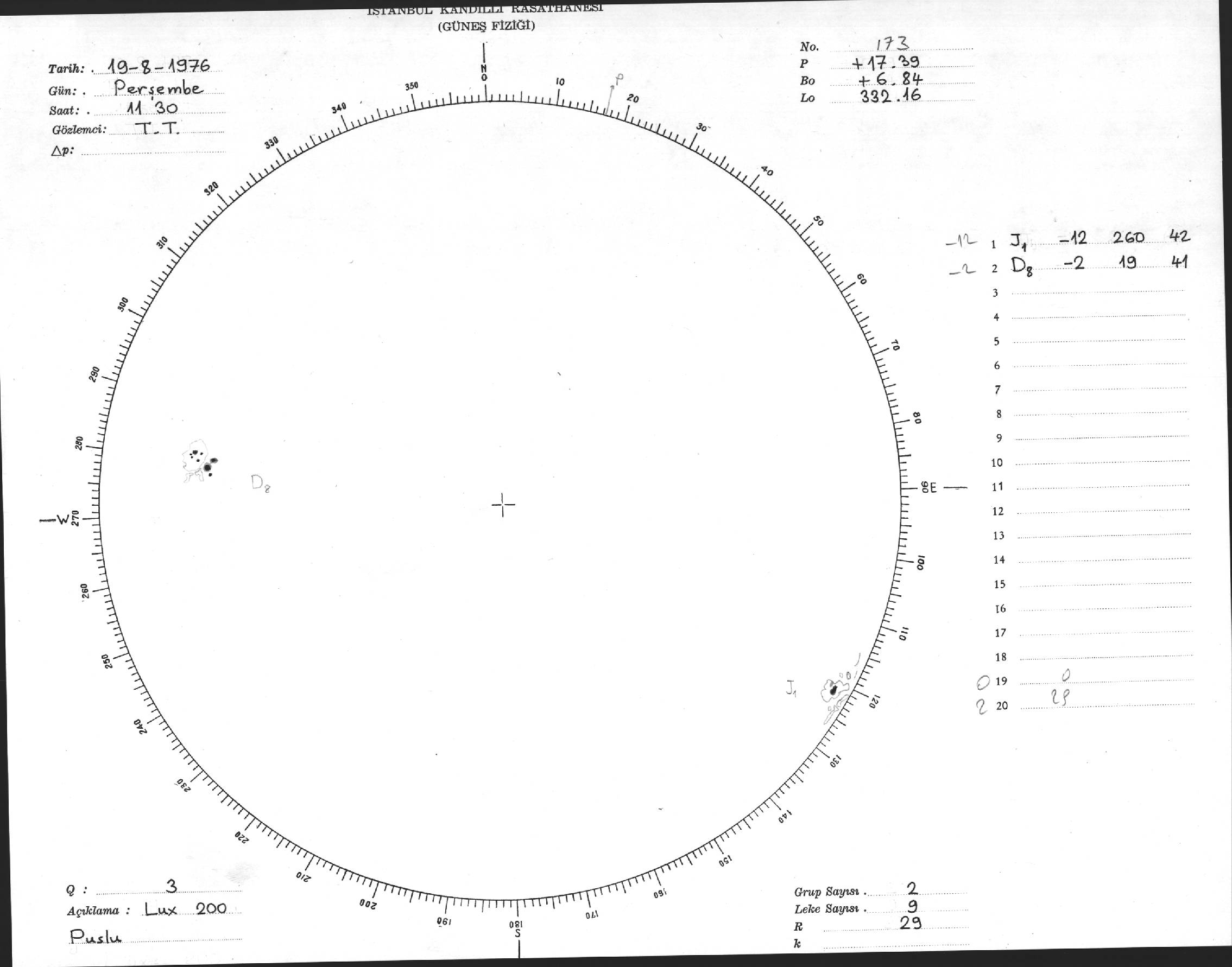 Güneş Lekesi Çizimi - 19.08.1976