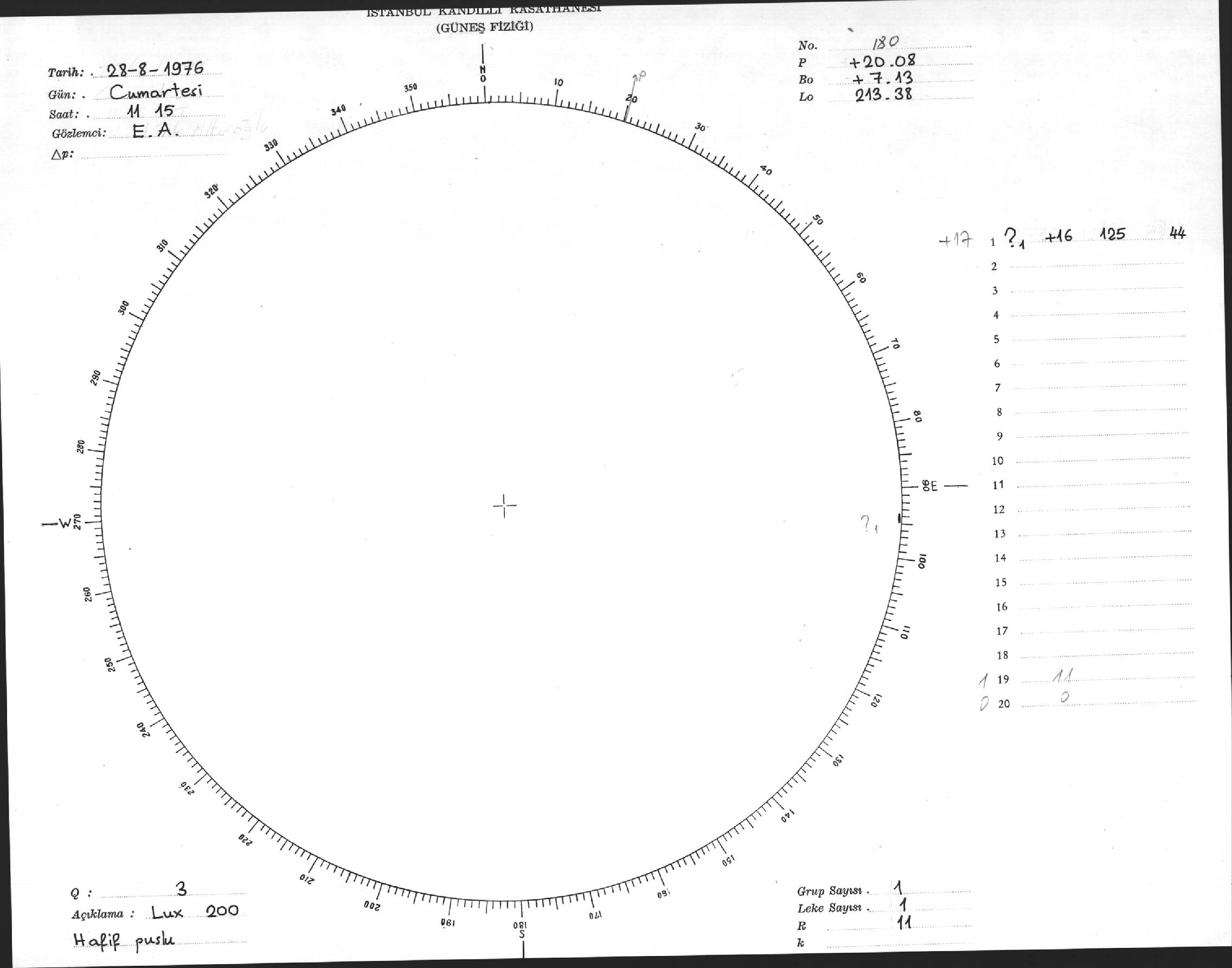 Güneş Lekesi Çizimi - 28.08.1976