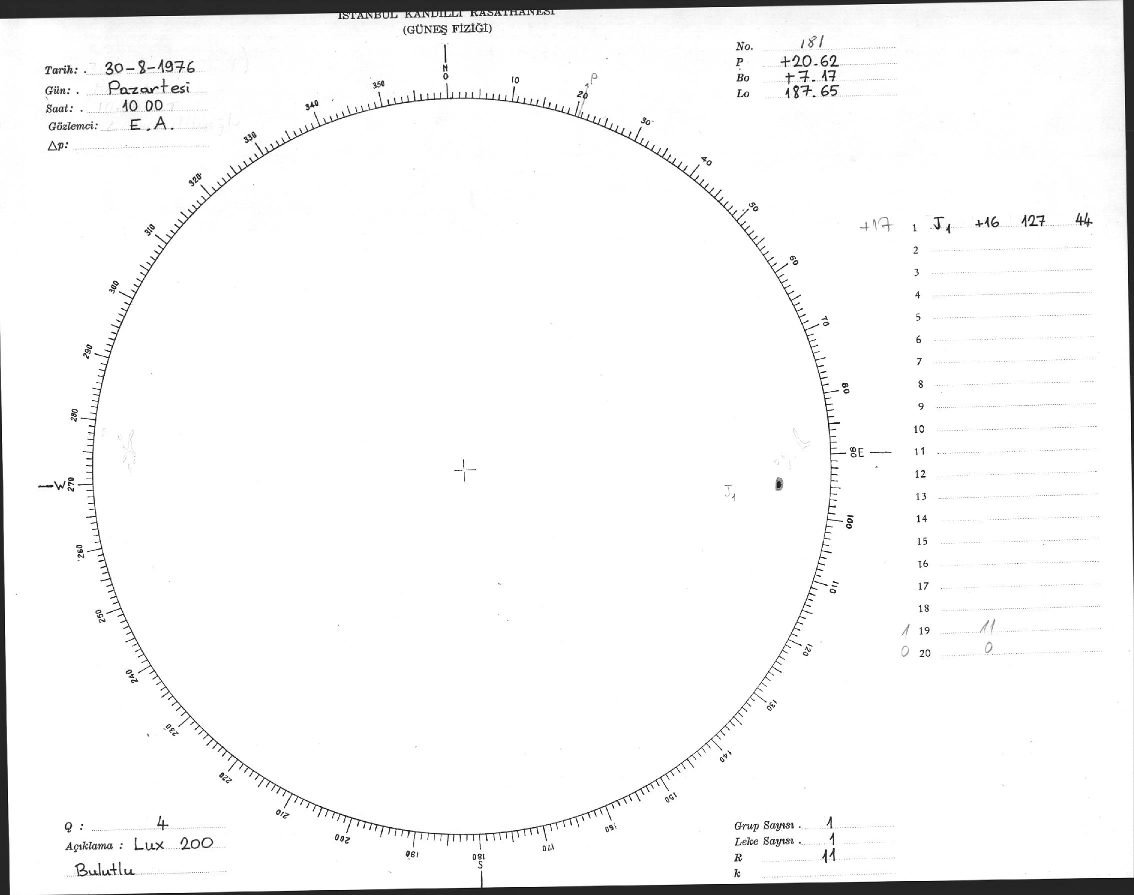 Güneş Lekesi Çizimi - 30.08.1976