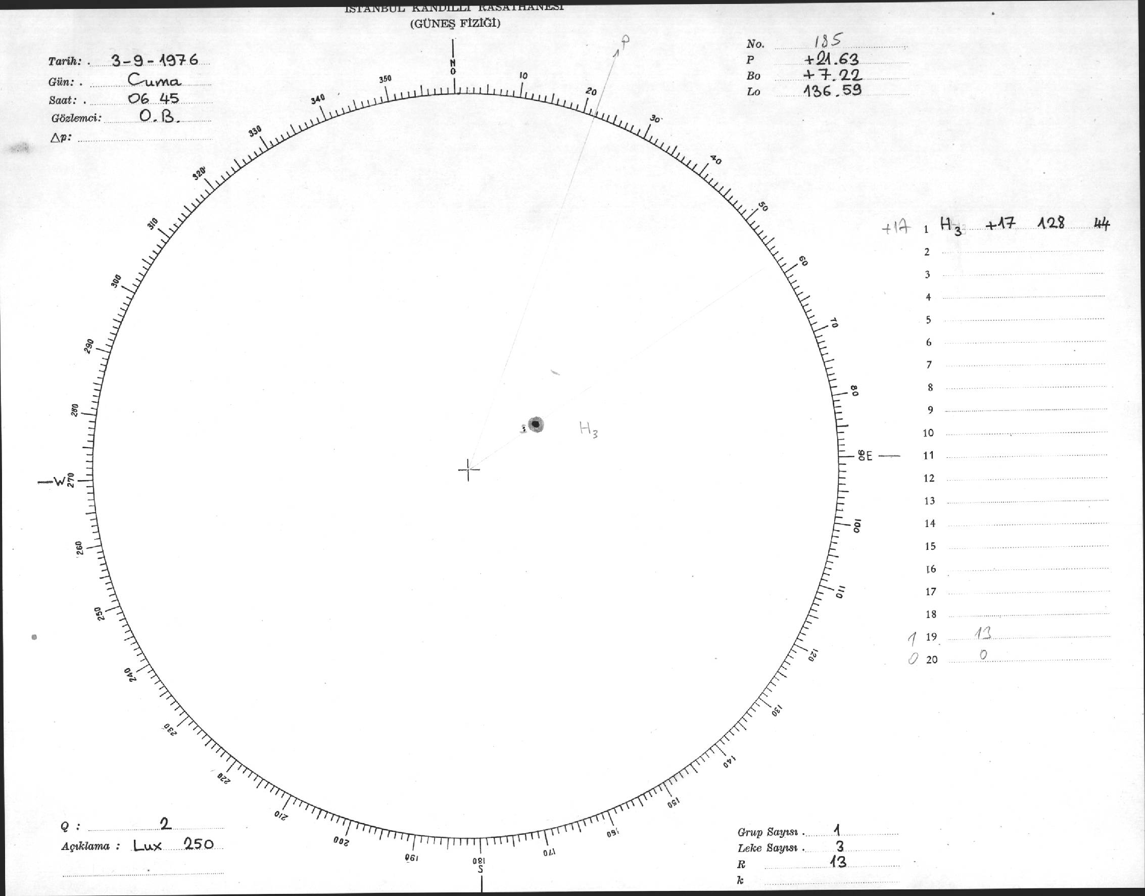Güneş Lekesi Çizimi - 03.09.1976