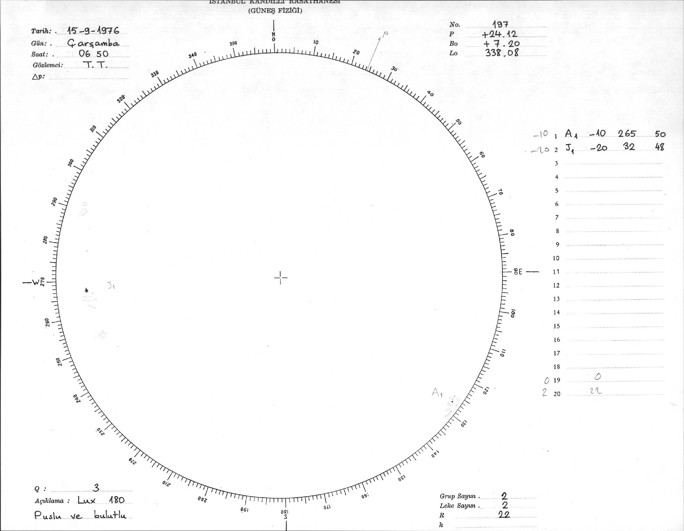 Güneş Lekesi Çizimi - 15.09.1976