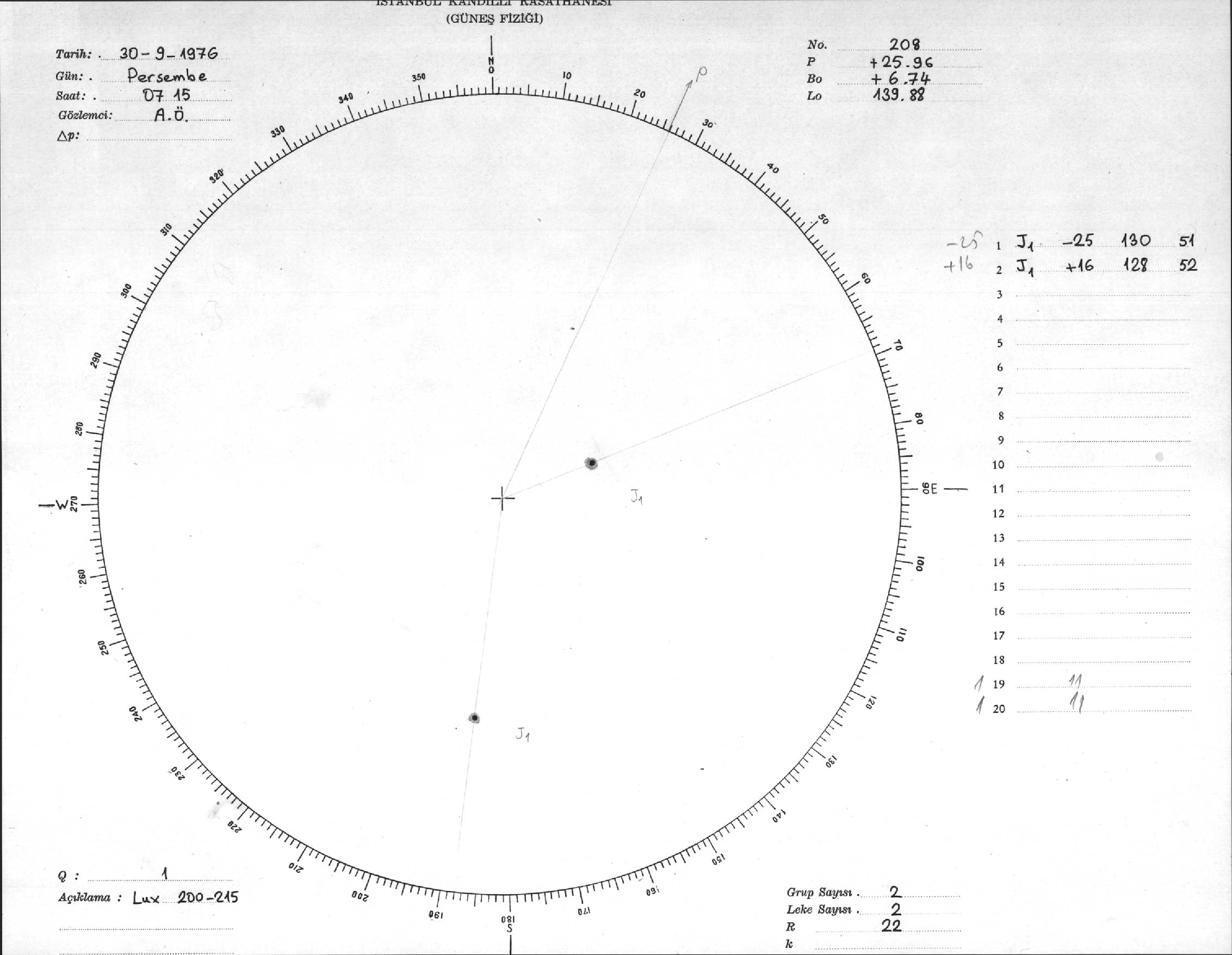 Güneş Lekesi Çizimi - 30.09.1976