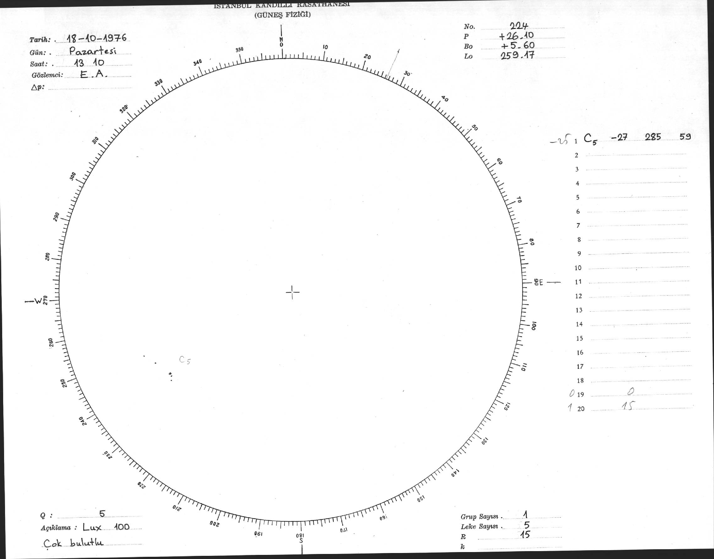 Güneş Lekesi Çizimi - 18.10.1976
