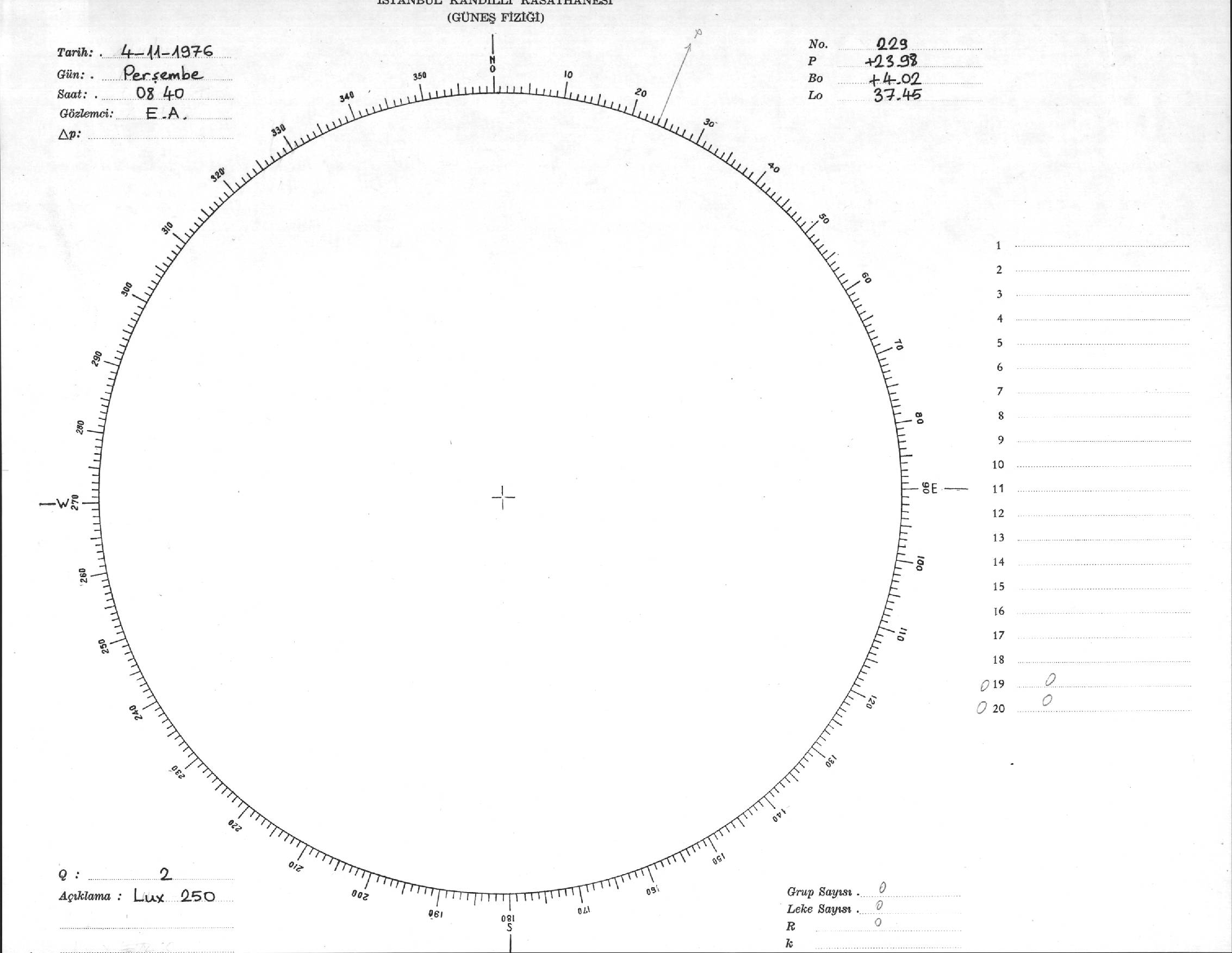 Güneş Lekesi Çizimi - 04.11.1976