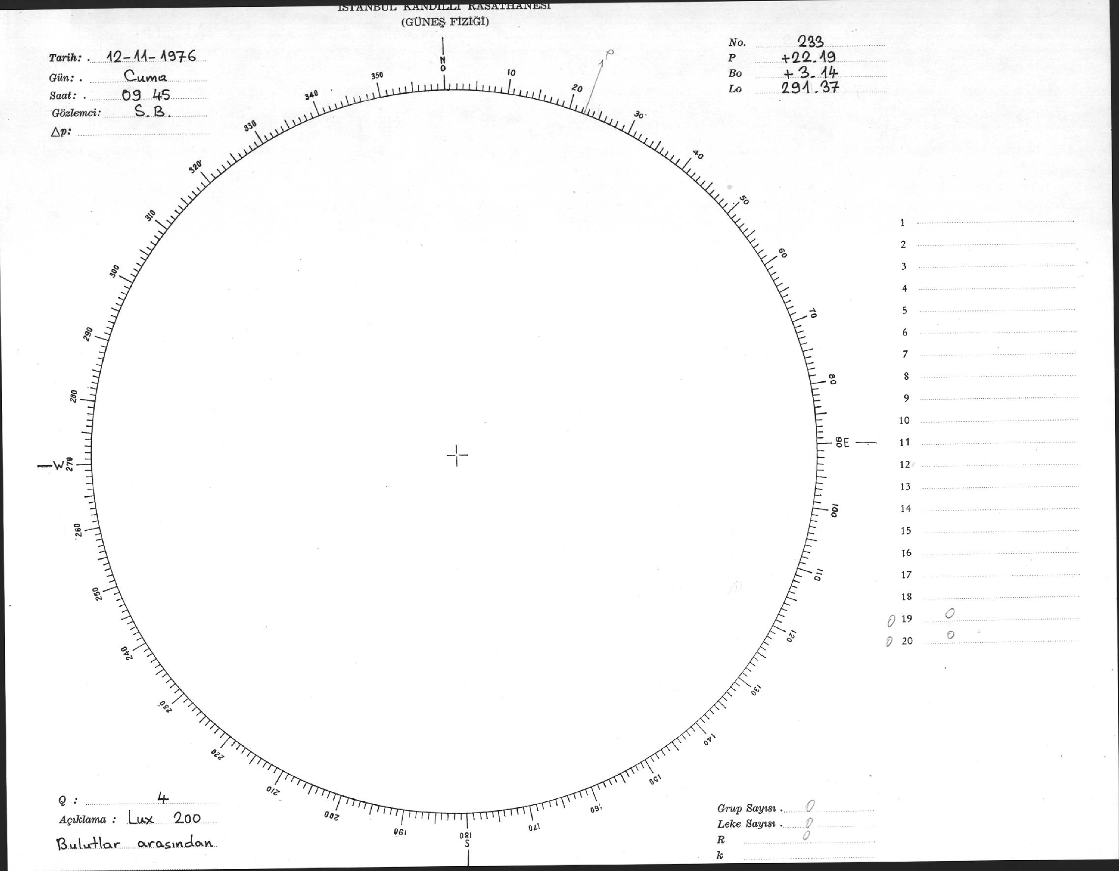 Güneş Lekesi Çizimi - 12.11.1976