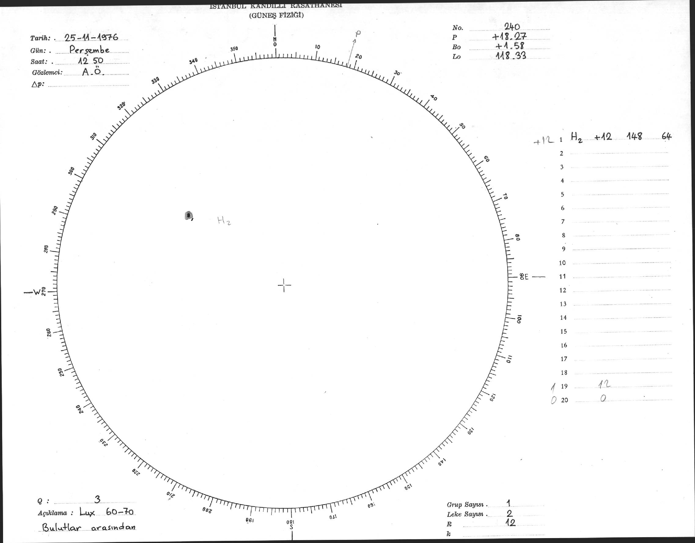 Güneş Lekesi Çizimi - 25.11.1976