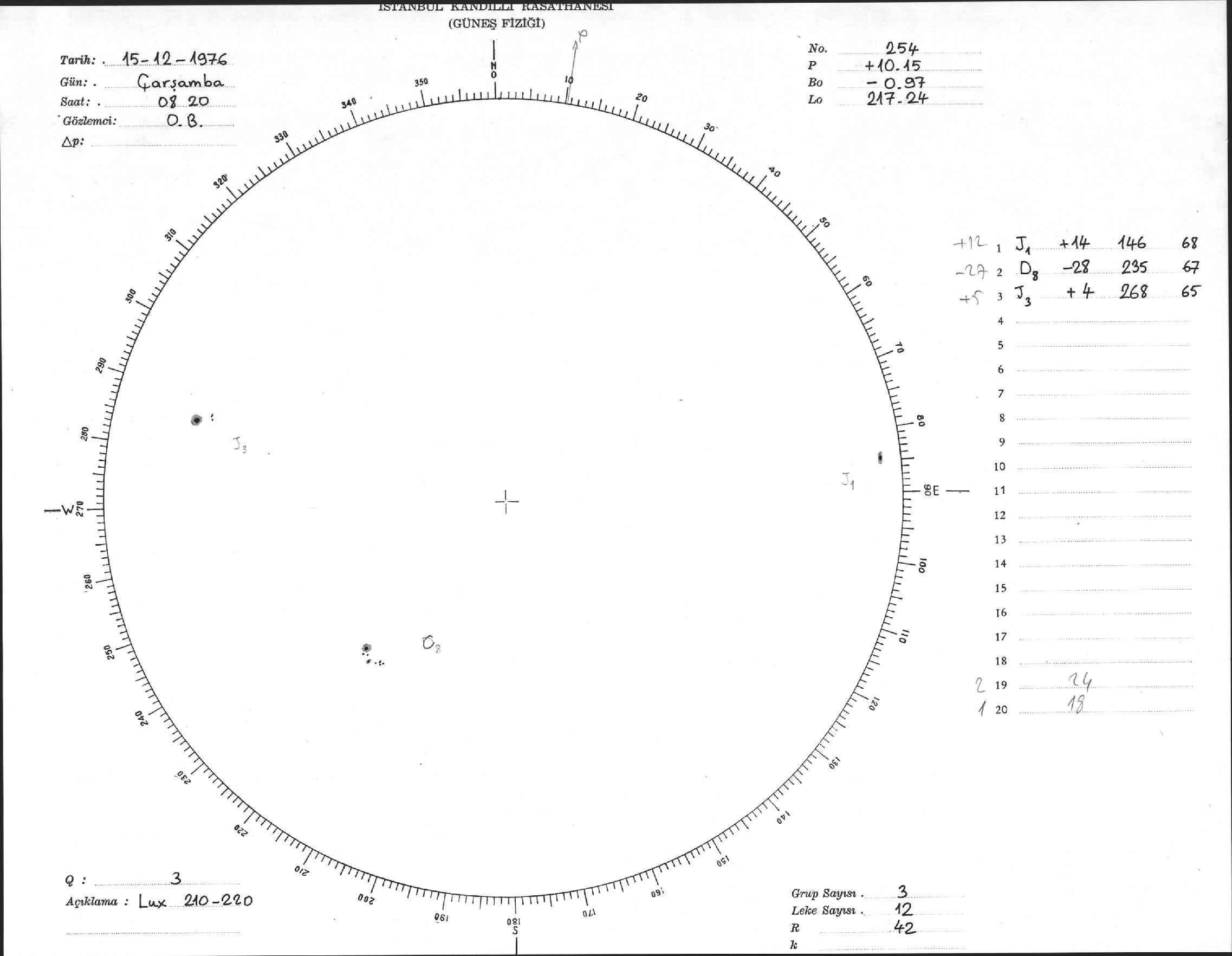 Güneş Lekesi Çizimi - 15.12.1976