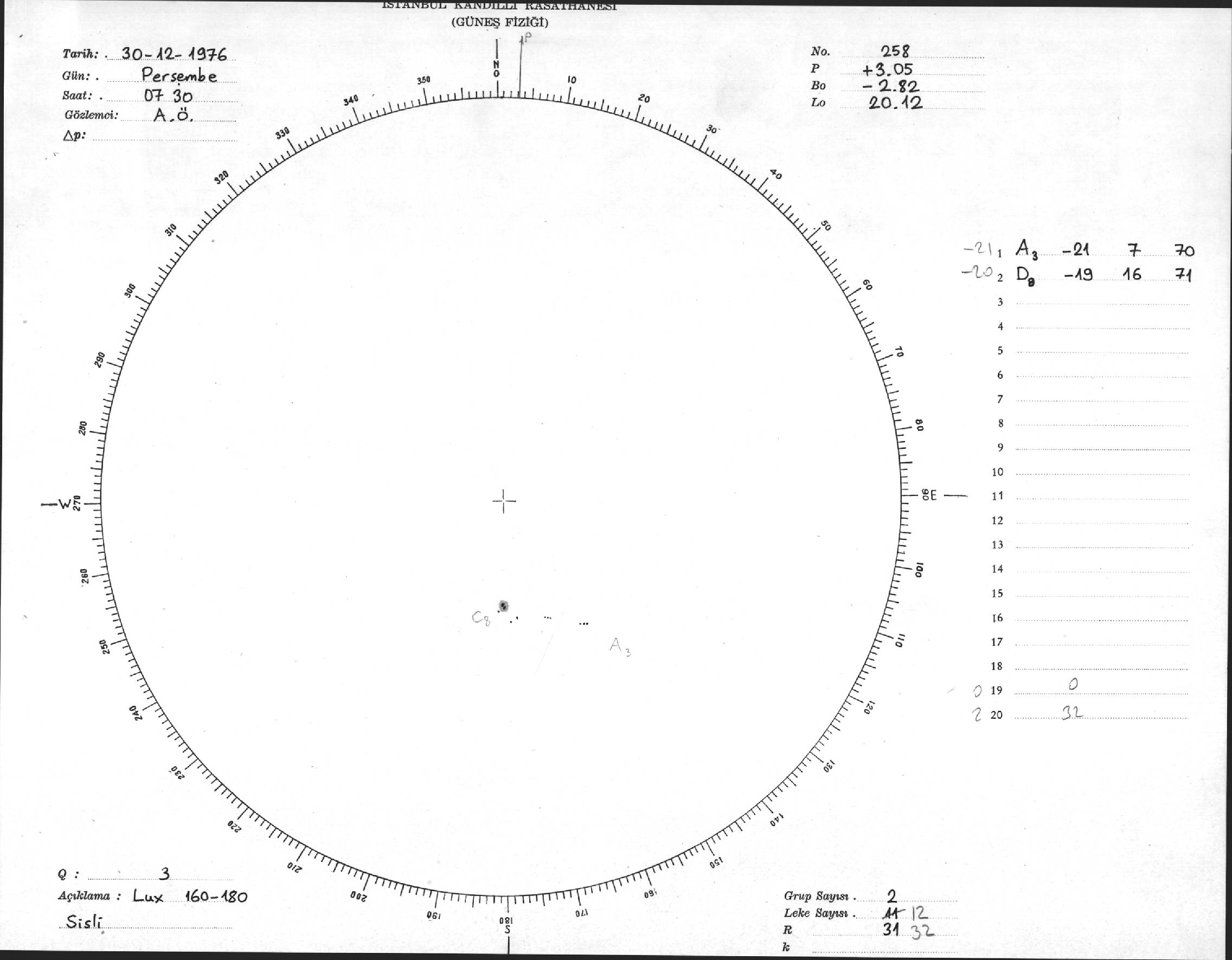 Güneş Lekesi Çizimi - 30.12.1976