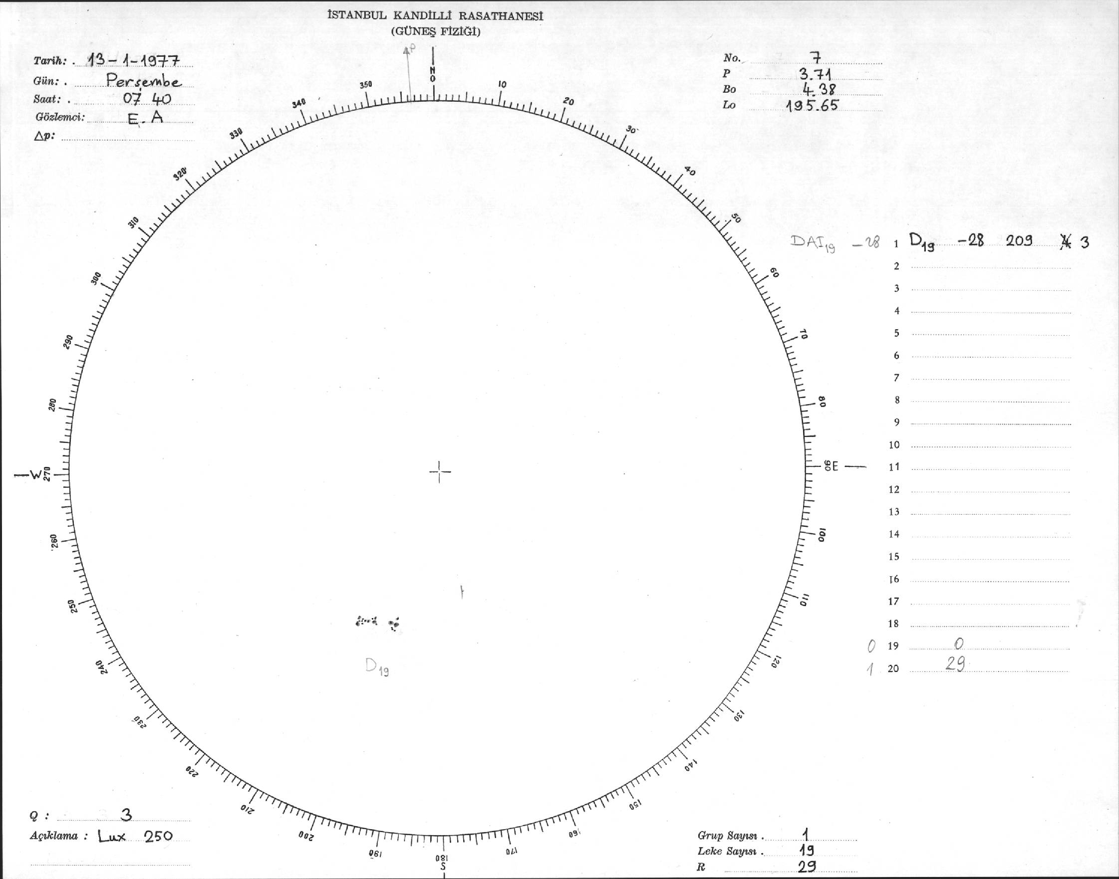 Güneş Lekesi Çizimi - 13.01.1977