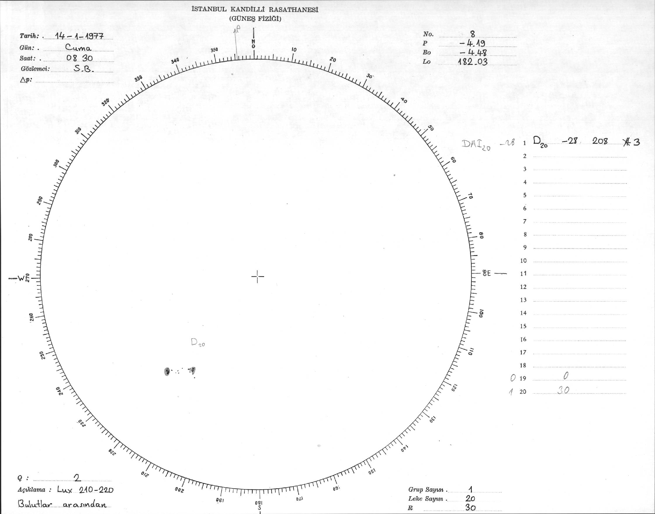 Güneş Lekesi Çizimi - 14.01.1977