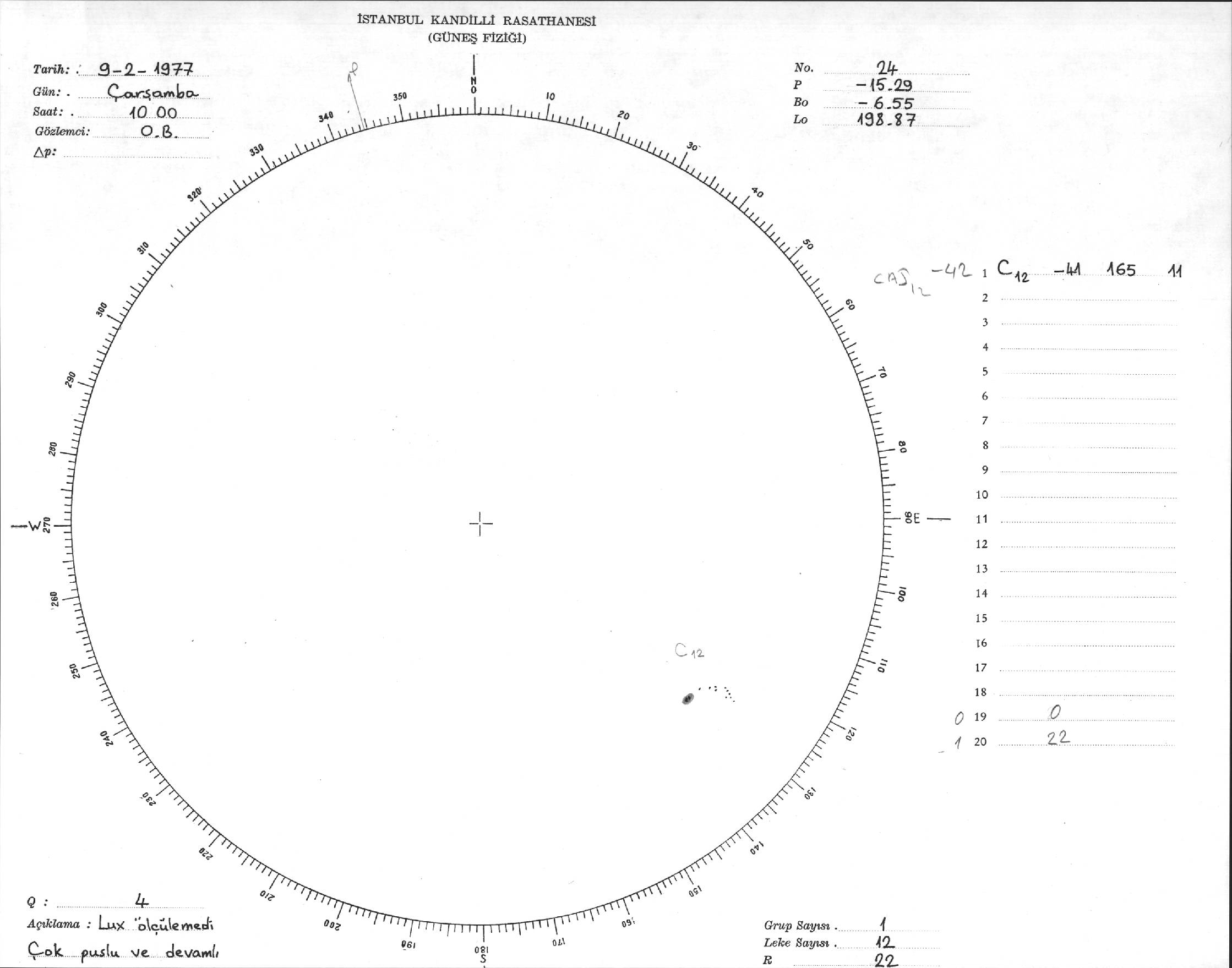 Güneş Lekesi Çizimi - 09.02.1977