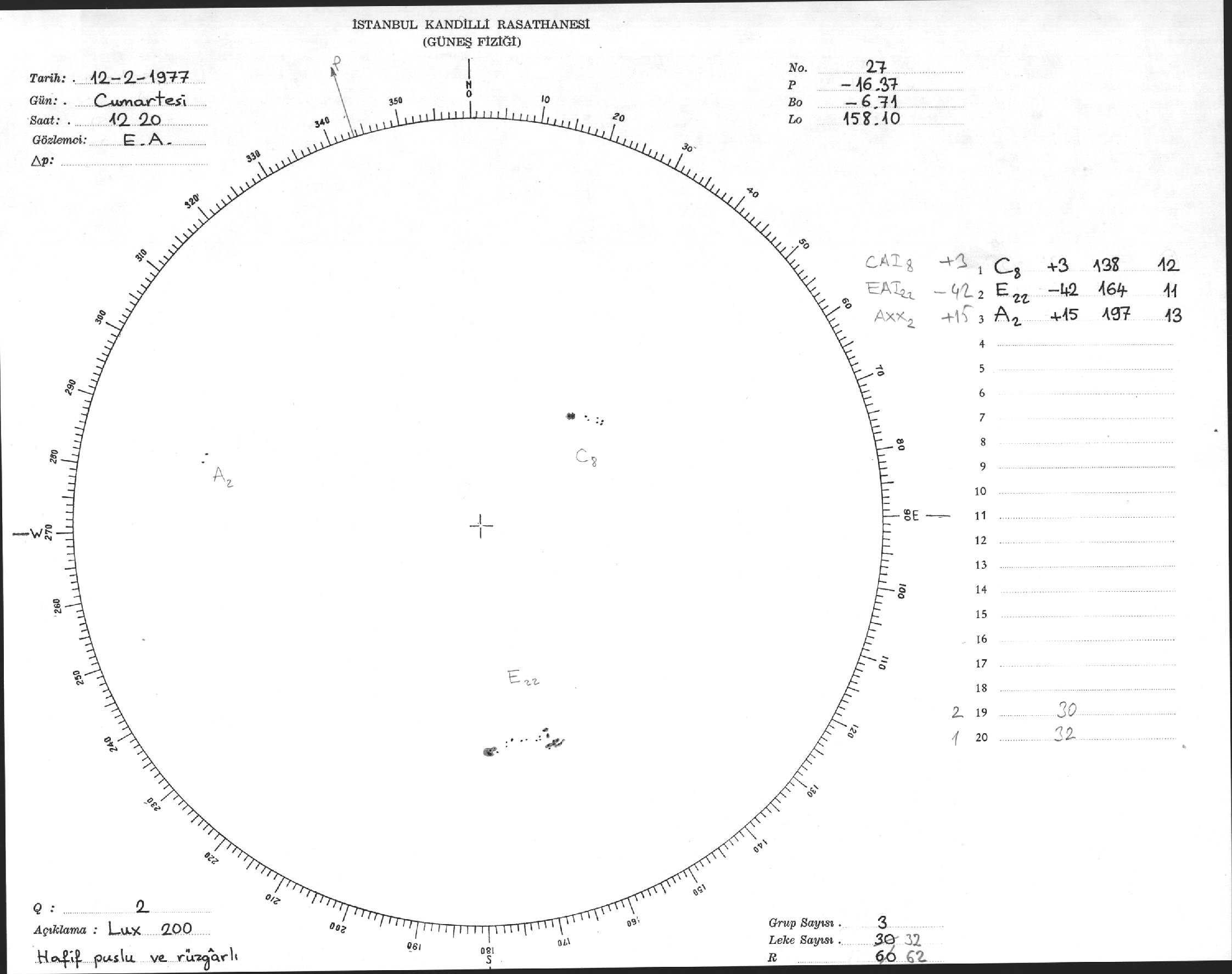 Güneş Lekesi Çizimi - 12.02.1977